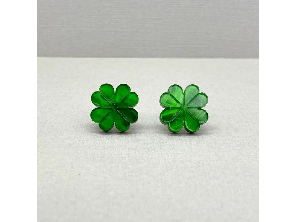 Tyto rozkošné náušnice čtyřlístky jsou vyrobeny z akrylu v sytě zelené barvě. Jeho rozměry jsou 1,6 cm se zapínáním z nerezové oceli.