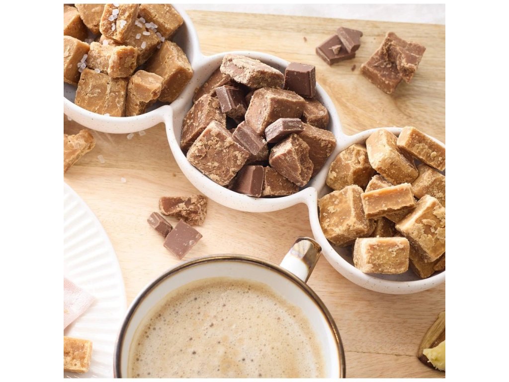 cukr, kondenzované mléko, glukózový sirup, máslo 10%, třtinový sirup, zvlhčující látka: glycerin, mořská sůl