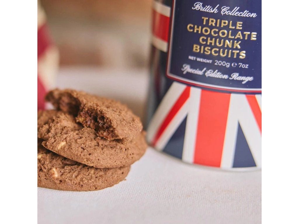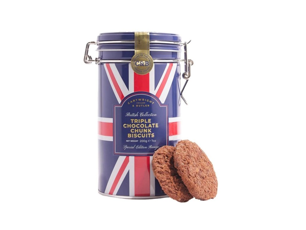 Zažijte dokonalý čokoládový požitek s těmito luxusními sušenkami se třemi druhy čokolády od Cartwright & Butler. Každé sousto této křehké a máslové sušenky je doslova splněným snem pro čokoholiky – obsahuje bohatou kombinaci bílých, mléčných a hořkých čokoládových kousků, které se rozplývají na jazyku.