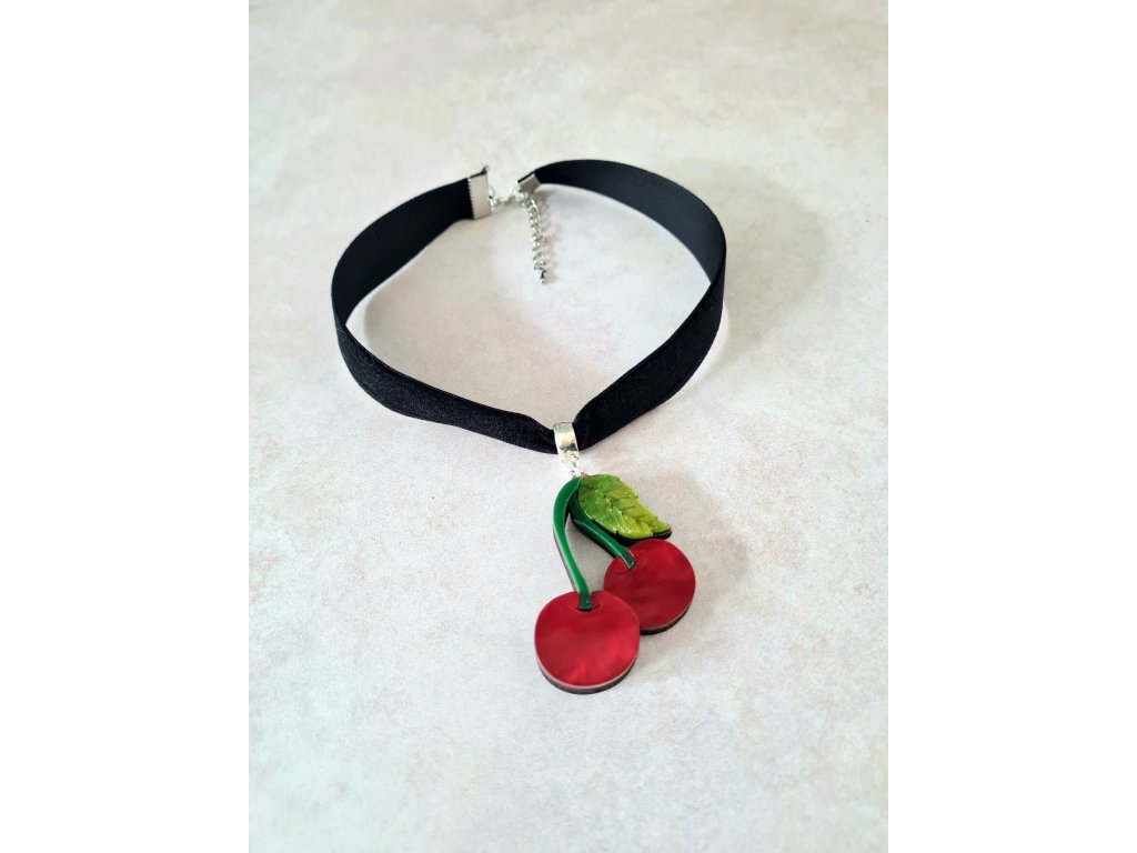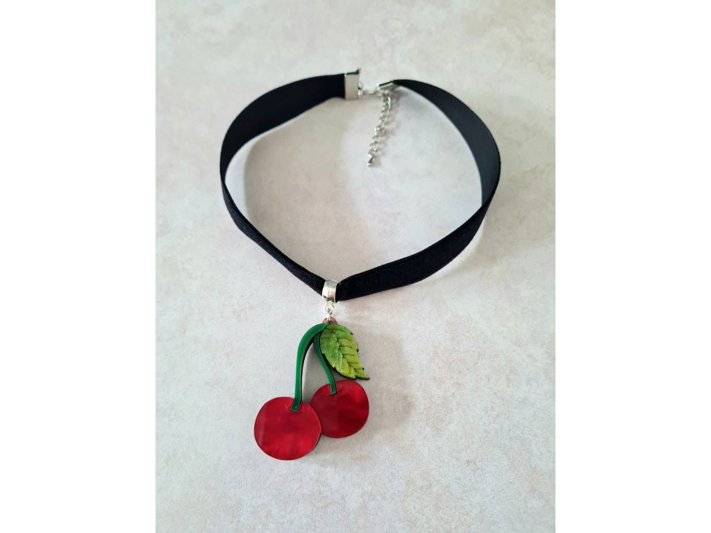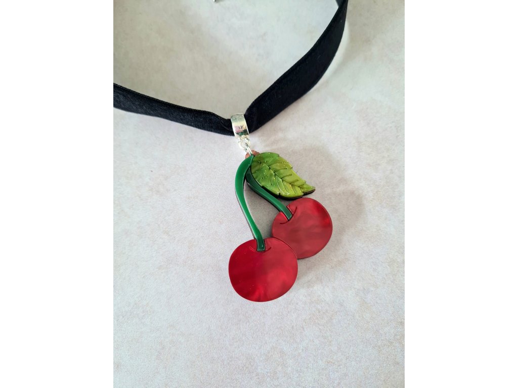 Elegantní sametový náhrdelník s párem třešní je stylovým doplňkem 🍒