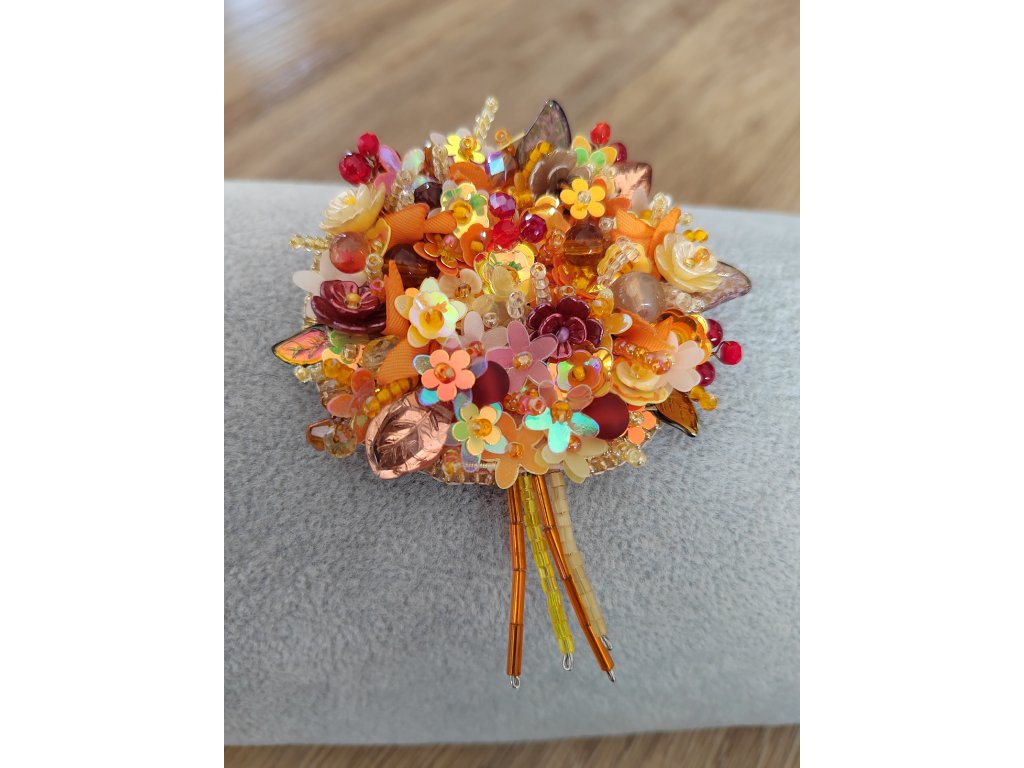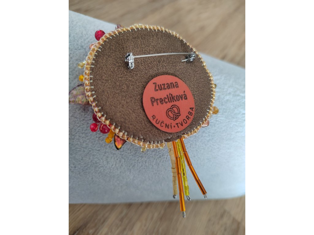 Ručně šitá brož ze skleněných korálků Podzimní kytice