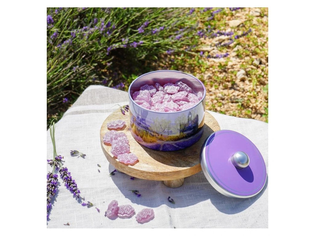 Ochutnejte francouzskou Provence. Bonbóny s chutí levandule v dárkové, plechové krabičce.