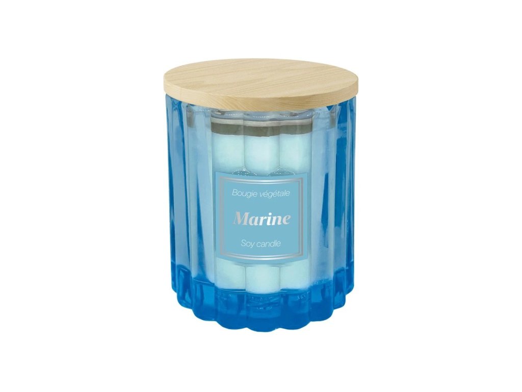 Svíčka je pečlivě zasazena do elegantního vroubkovaného skla světle modré barvy s krásným víčkem z bukového dřeva, design svíčky dodává nádech přírodního luxusu. S dobou hoření až 30 hodin vám poskytne dostatek času, abyste si užili příjemnou vůni.