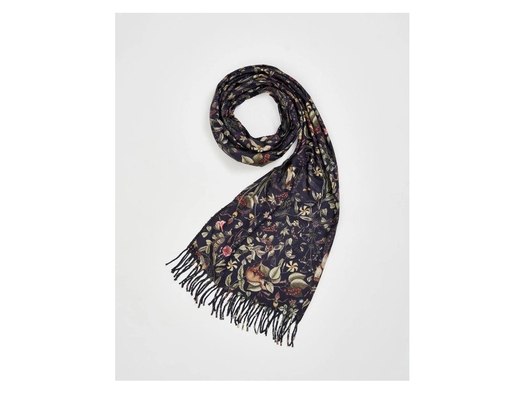 Zahalte se do šálu Wolf Garden v elegantní temné modři a zažijte čistou radost z propojení s přírodou. Tento nádherně zpracovaný šál je navržen tak, aby Vás obejmul hřejivým pohodlím a stylem, což z něj dělá perfektního společníka pro Vaše outdoorové dobrodružství. Je vyroben z měkkých recyklovaných materiálů a zdoben třásněmi. Krásný, jemný, detailně zpracovaný motiv lesních zvířat a rostlin upoutá pozornost. Ať už se vydáváte na procházku za soumraku nebo na ranní túru, tento výjimečný šátek bude Vaším nepostradatelným doplňkem.