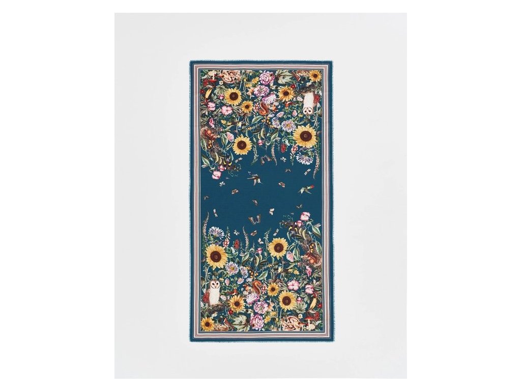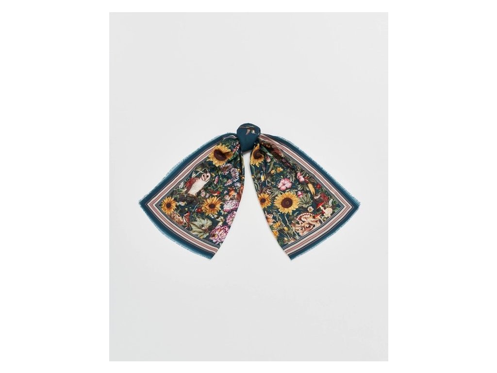 Dlouhý šátek Botanical Green oslavuje krásu přírody. Svým detailním vzorem květin, listů, zvířat, motýlů a klidnými, zelenými tóny je ideálním doplňkem Vašeho jarního outfitu.