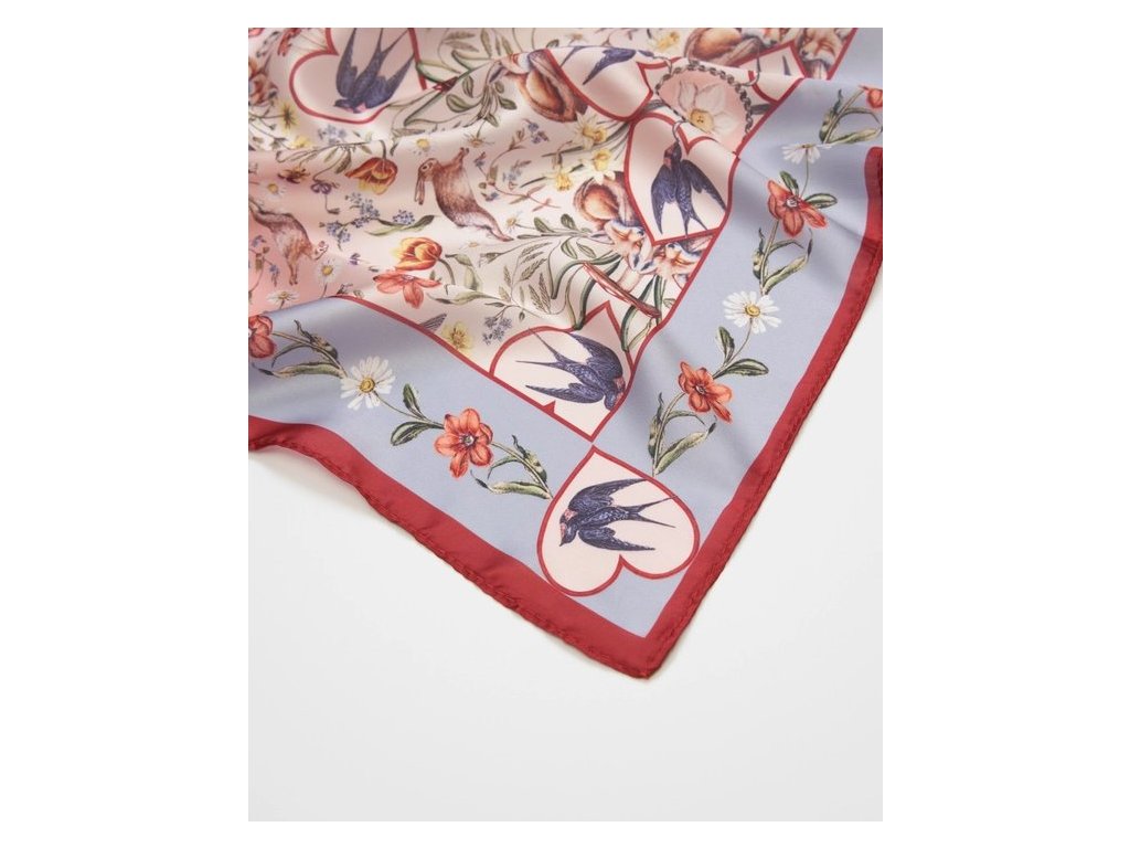 Tento šál v jemných odstínech světle modré, růžové a červené Vás okouzlí nejen svým vzorem, ale hlavně jemným, hedvábným materiálem. Ideální doplněk pro elegantní i ležérní styl oblékání.