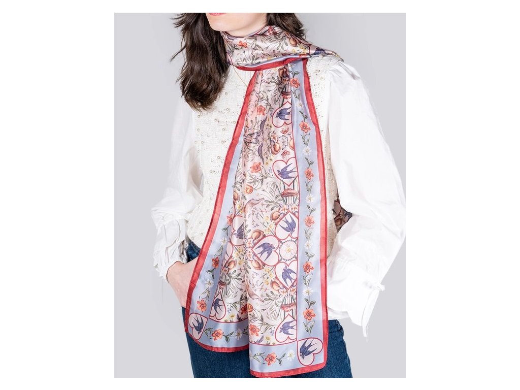 Dlouhý, jemný šál Folksy Fox s motivem vlaštovek od Fable England, 180 x 60 cm