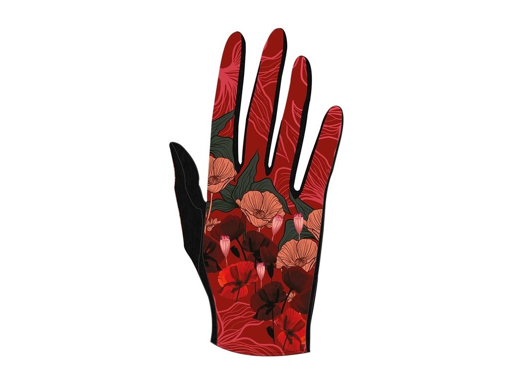 Dámské vlněné rukavice model Hibiscus Red s potiskem ibiškových květů v odstínech červené