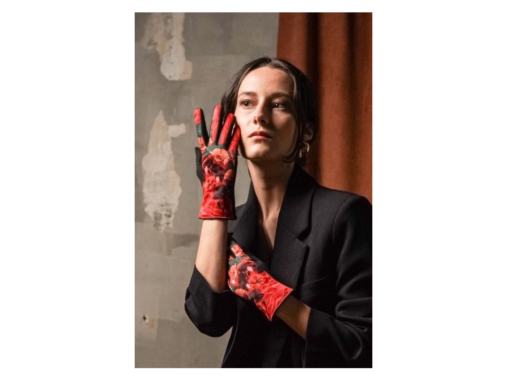 Spojte styl, pohodlí a praktičnost s těmito dámskými rukavicemi od FST – le French Studio, které zaujmou originálním designem s červeným potiskem květů ibišku na černém podkladu, navrženým a vytištěným ve Francii.