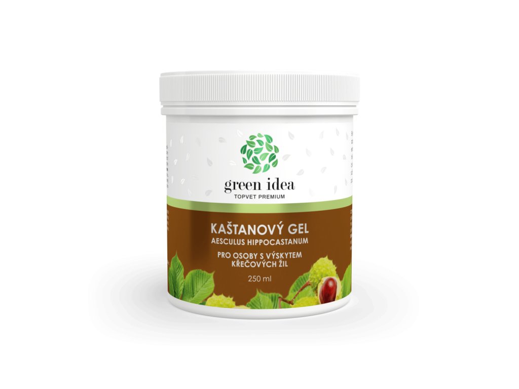 Přípravek na kůži pro osoby s výskytem křečových žil. Účinnými složkami kaštanu jsou aescin, aesculin, flavonoidní glykosidy a třísla. Aescin má zesilující účinek na žilní stěny a zvyšuje jejich pružnost, pomáhá snižovat otoky. Gel je vhodný k aplikaci ke zklidnění pokožky v oblasti hemoroidů.Doplňkové parametry