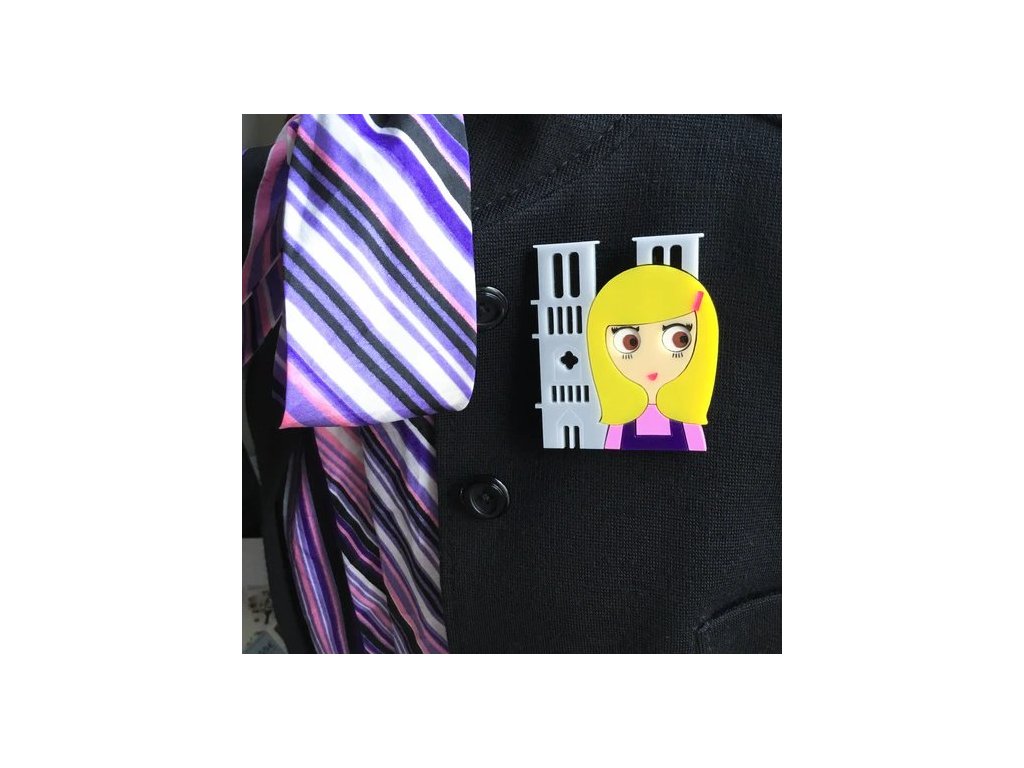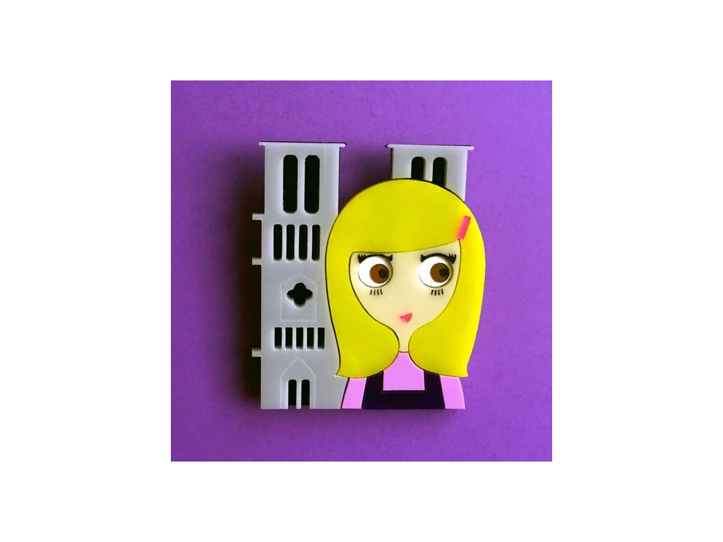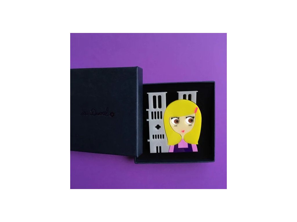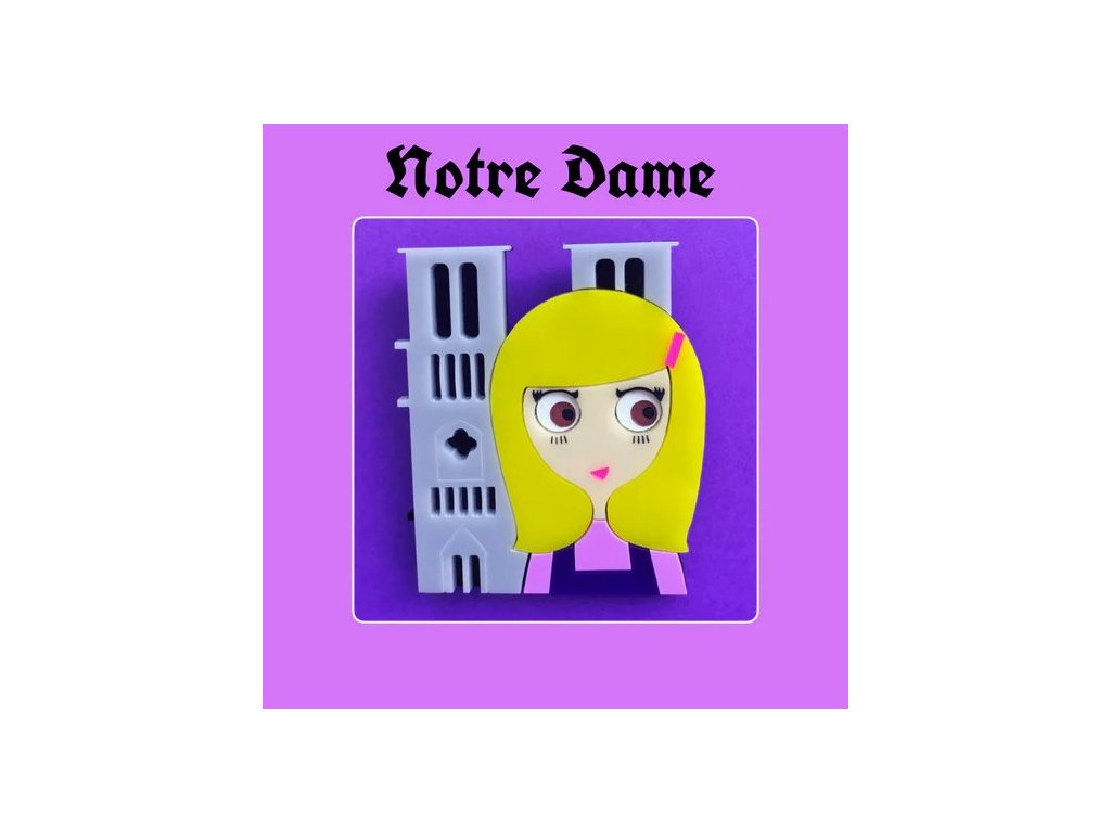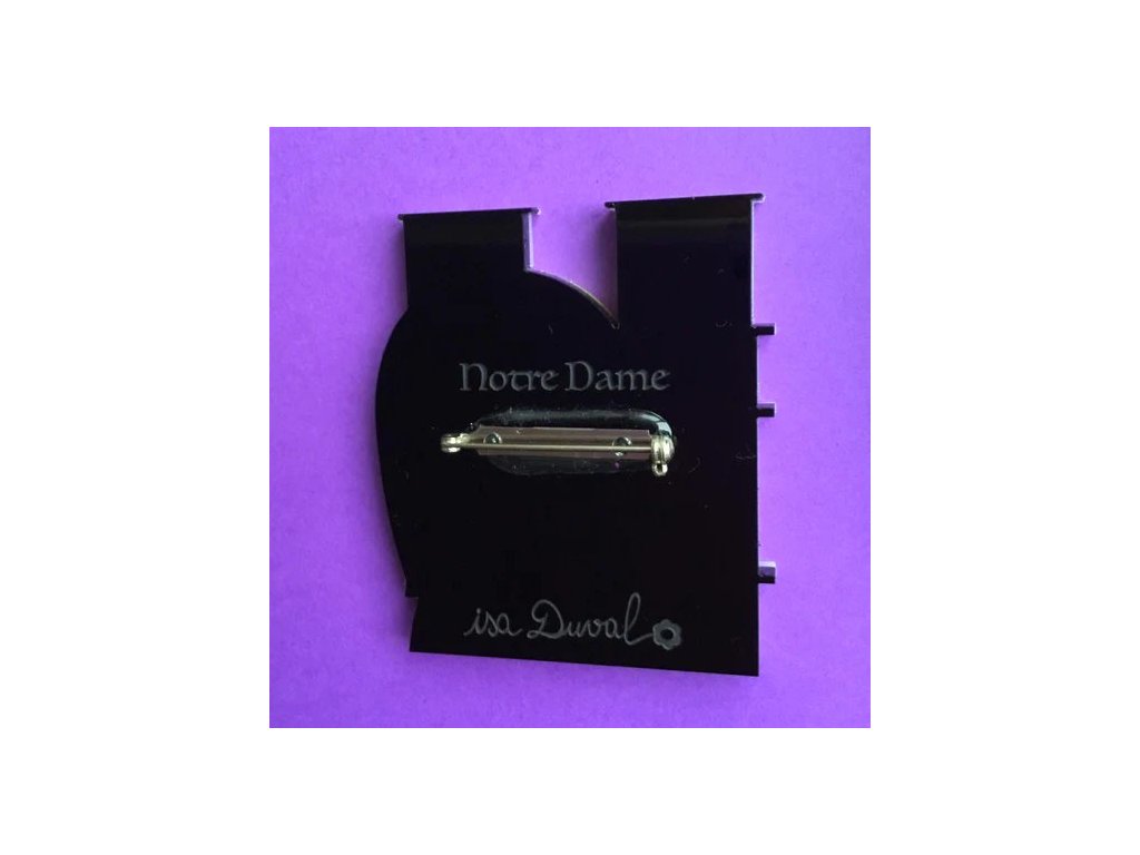 Tato brož vznikla jako pocta slavné katedrále Notre Dame, která je jednou z dominant Paříže již od 12. století a kterou 15. dubna 2019 zachvátil ničivý požár. Její rekonstrukce trvala pět a půl roku a v roce 2024 se dočkala znovuotevření a zpřístupnění veřejnosti. Brož má rozměry 6,2 x 5 cm a tloušťku 6 mm a je ručně vyrobena z akrylové pryskyřice.