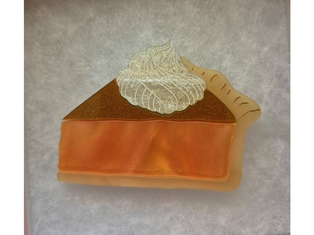 Nádherná podzimní brož je vyrobena z akrylové pryskyřice se třpytkami. Rozměry brože jsou 6 x 4,5 cm a zapínání s pojistkou je vyrobeno z nerezové oceli.
