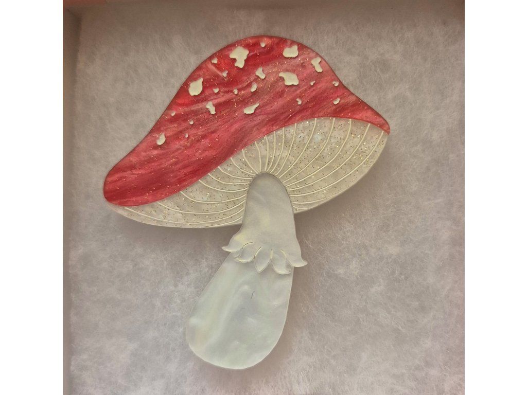 Nádherná, magická brož je vyrobena z akrylové pryskyřice se třpytkami. Rozměry brože jsou 4,5 x 4 cm a zapínání s pojistkou je vyrobeno z nerezové oceli.