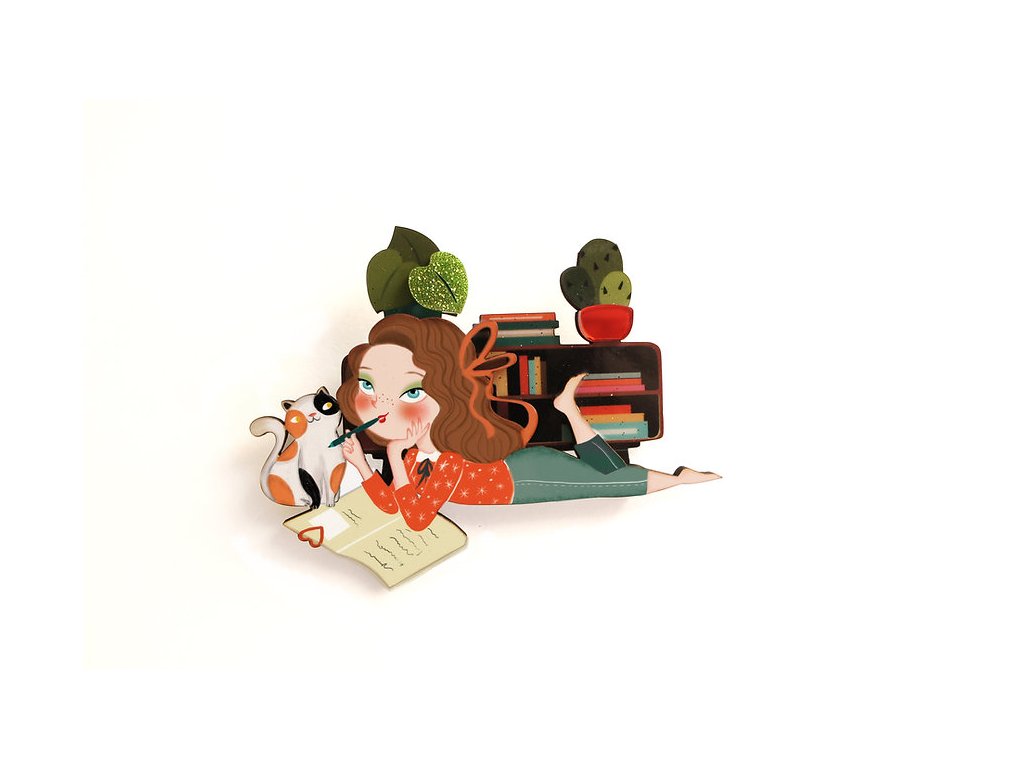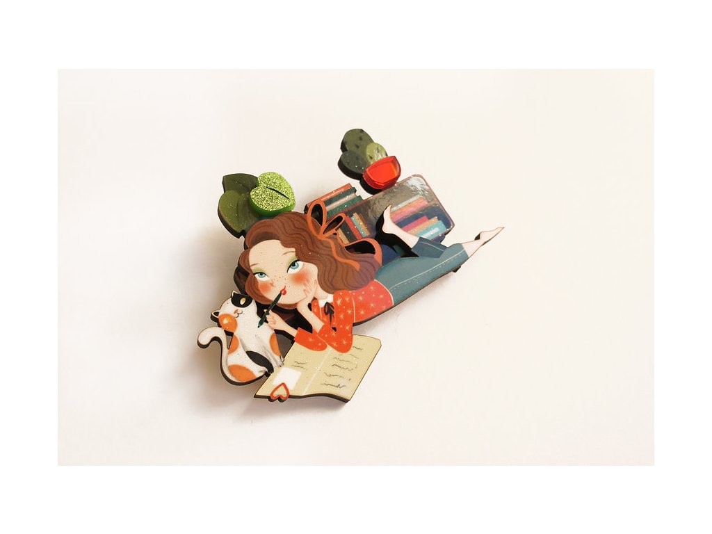 Brož pro všechny romantické slečny a dámy, které rády svěřují papíru svá nejtajnější přání. Rozměry brože 6,5 x 4 cm se zapínáním na sponu s pojistkou. Je vyrobena sublimační technikou ze dřeva a akrylové pryskyřice se třpytkami. Zapínání z nerezové oceli.