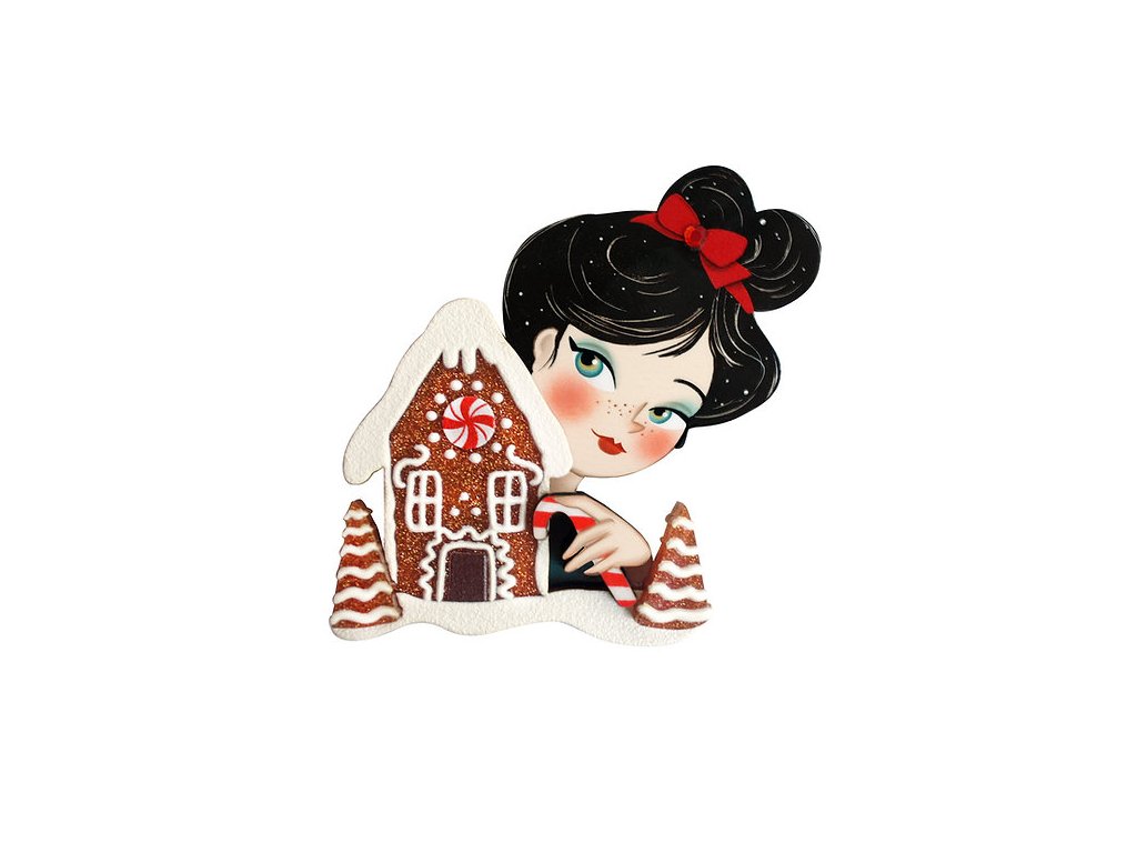 Vánoční brož Dívka s perníkovou chaloupkou