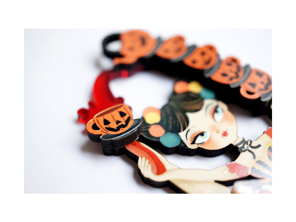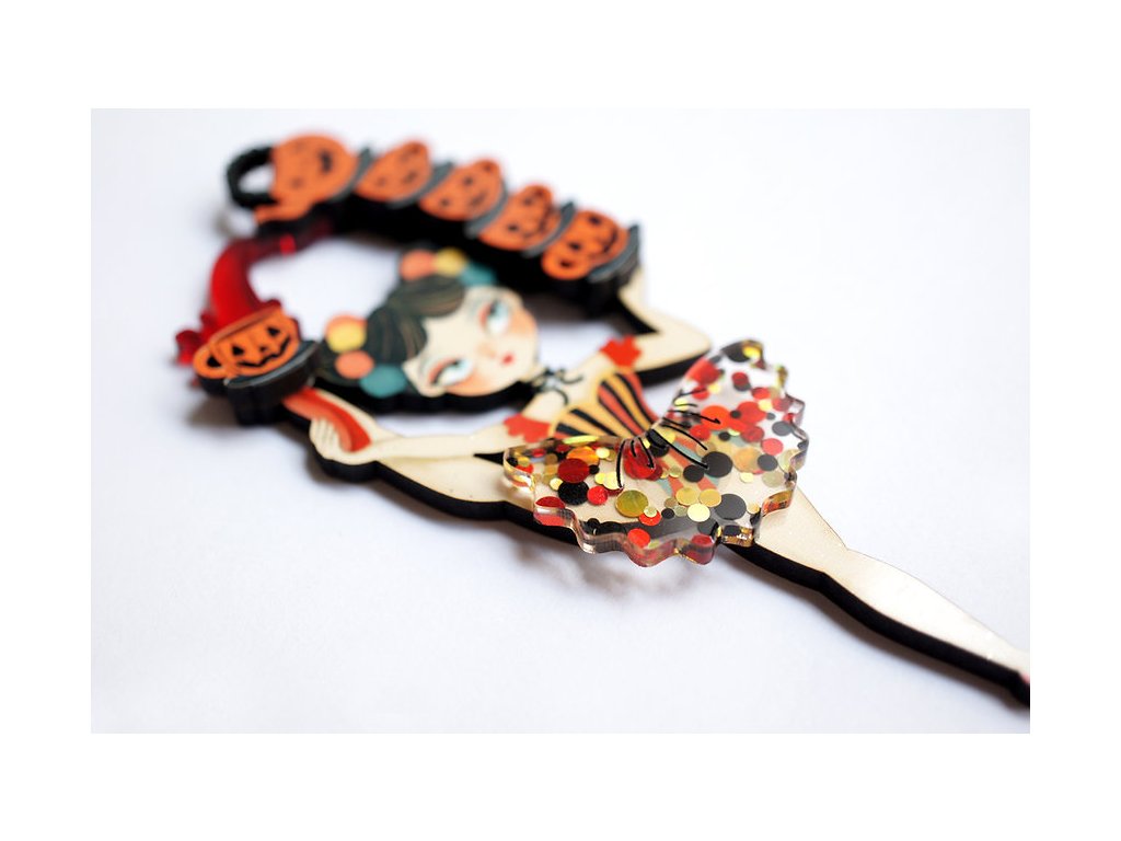 LaliBlue Brož Dívka žonglující s dýňovými šálky