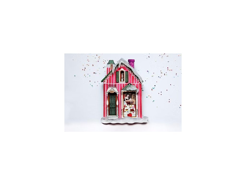 Rozměry brože 8 x 6 cm se zapínáním na sponu s pojistkou. Je vyrobena sublimační technikou ze dřeva a akrylové pryskyřice se třpytkami. Dům je vyroben z prořezávaných vrstev dřeva, proto působí plasticky a jeho detaily jsou precizní a velmi jemné. Zapínání z nerezové oceli s bezpečnostní pojistkou.