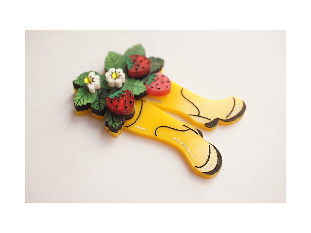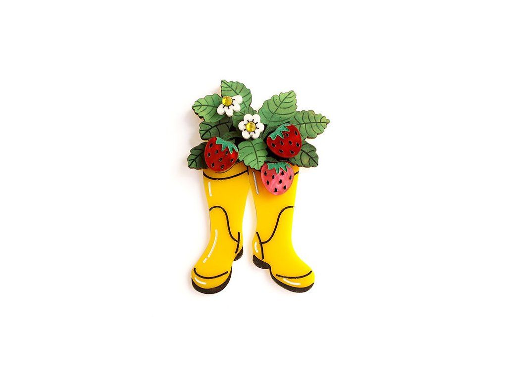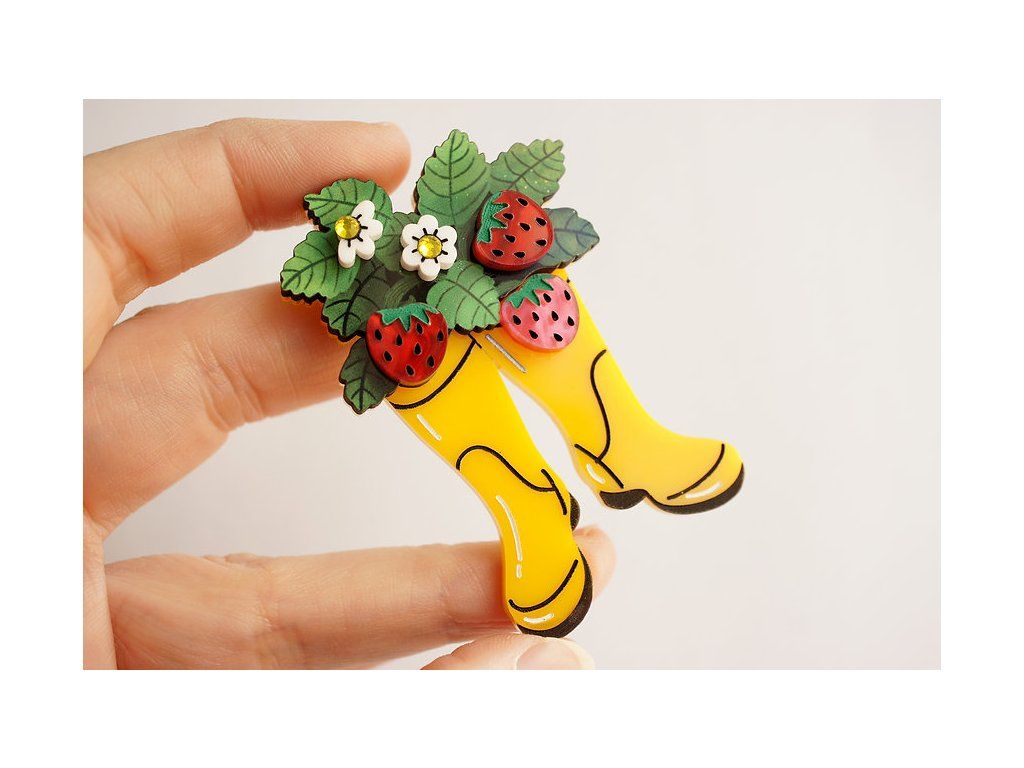 Brož Holinky jako květináč s jahodami