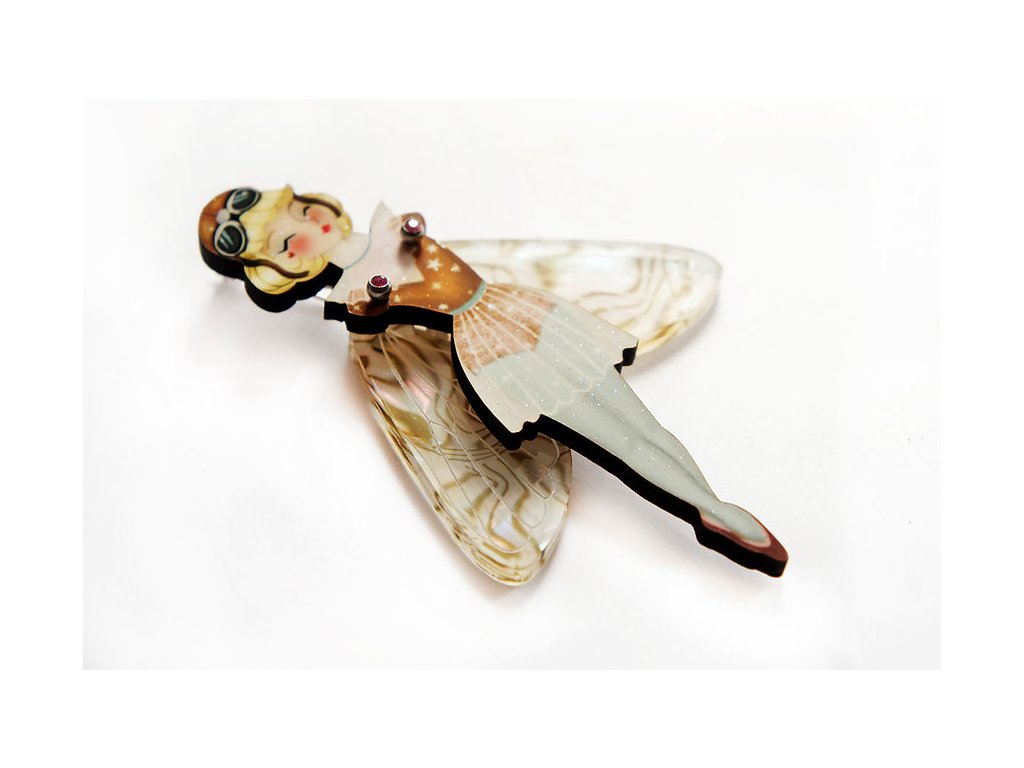 Brož Tajemná, motýlí dívka s pohyblivými křídly