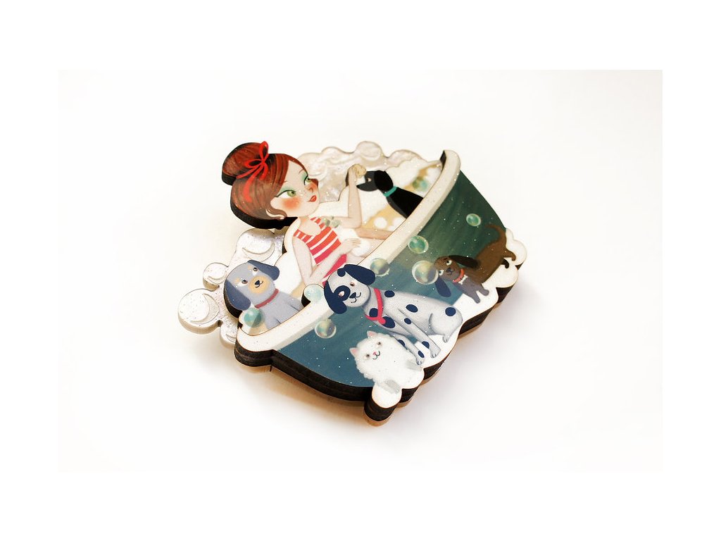 Tato brož je jako stvořená pro ty, jejichž srdce bije pro oddané psí oči, čtyři tlapky a všechny lumpárny, které takový mazlíček zvládne. Rozměry brože 7 x 6 cm se zapínáním na sponu s pojistkou. Je vyrobena sublimační technikou ze dřeva a akrylové pryskyřice se třpytkami. Zapínání z nerezové oceli.