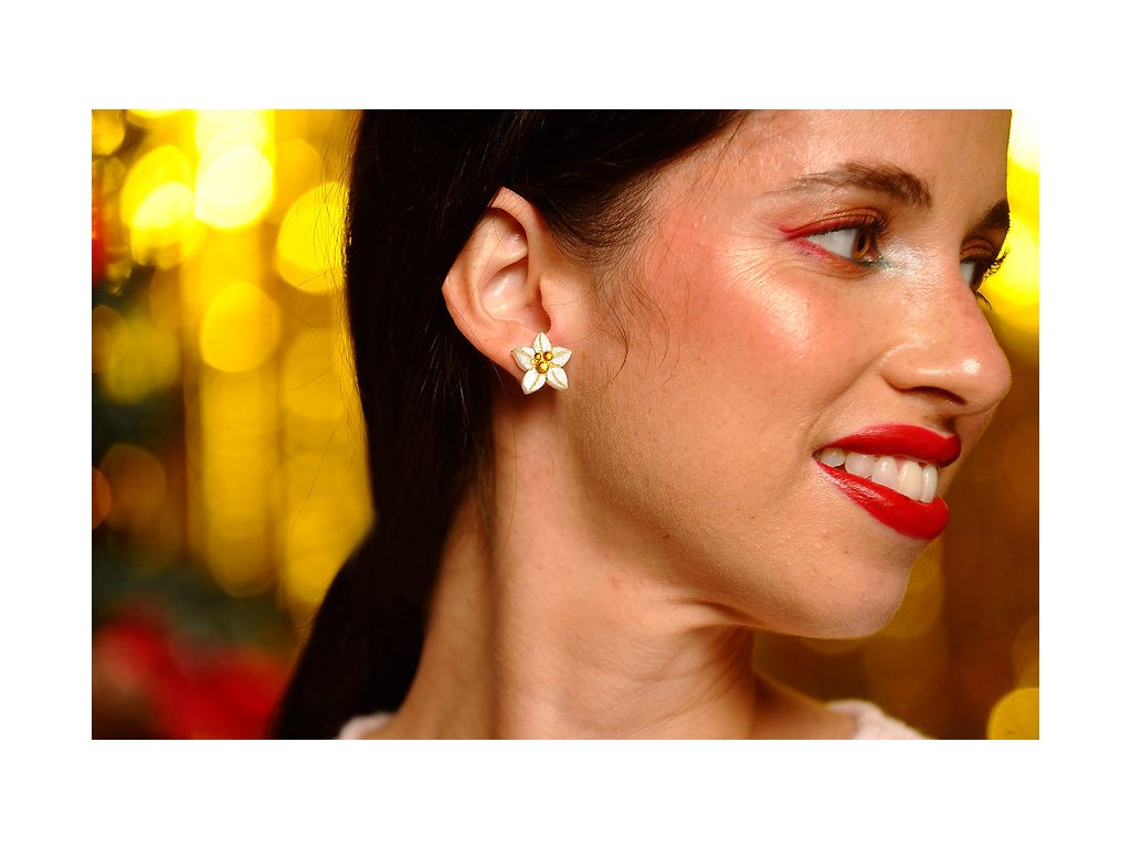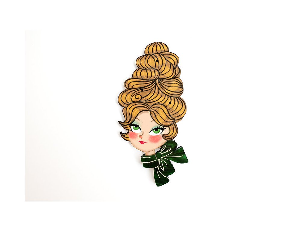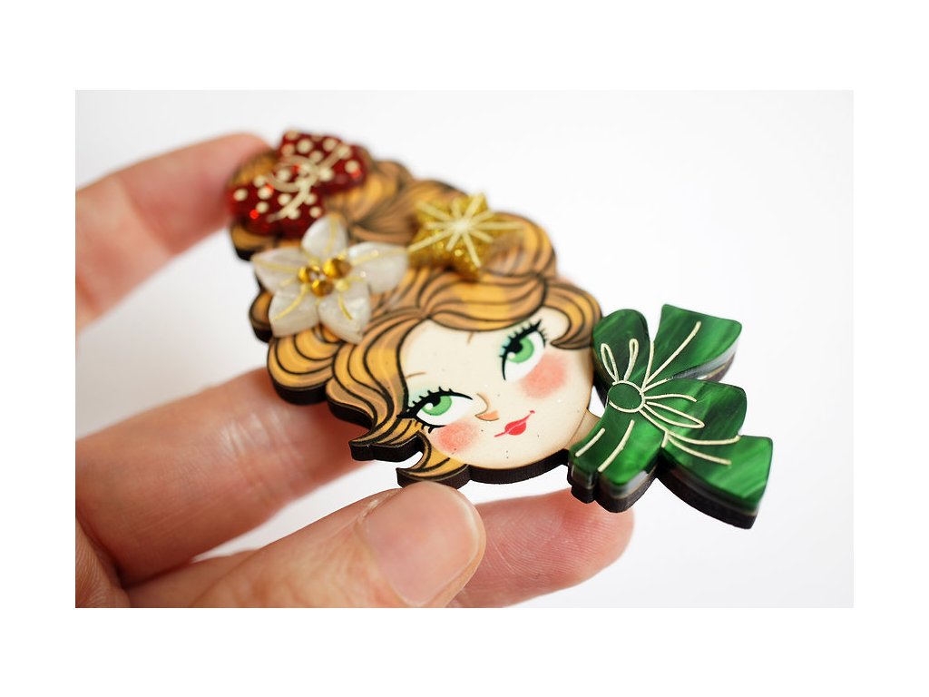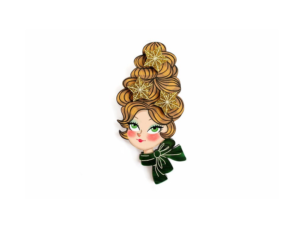 Jedna brož, tisíc možností! Tato dívka s nádherným účesem je hvězdou Vánoc. Její vlasové doplňky lze nosit jako náušnice. Kombinujte různé vzhledy účesu a noste náušnice podle své nálady.