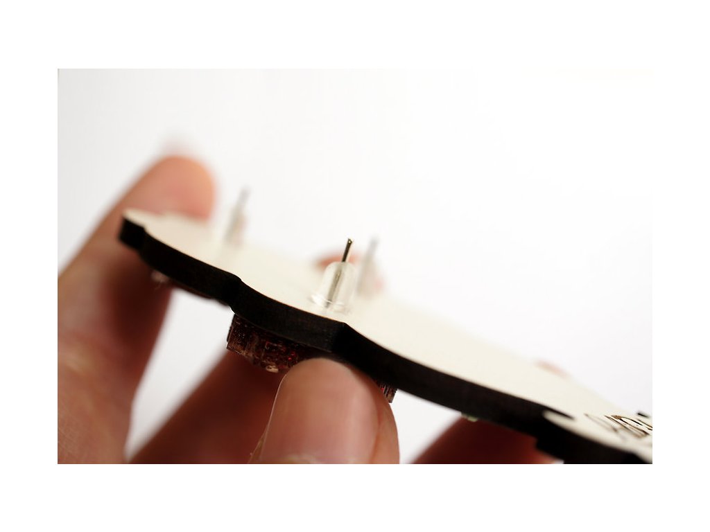 Brož vyrobená ze dřeva s detaily z akrylové pryskyřice, zdobena kamínky. Zapínání s bezpečnostní sponou z nerezové oceli