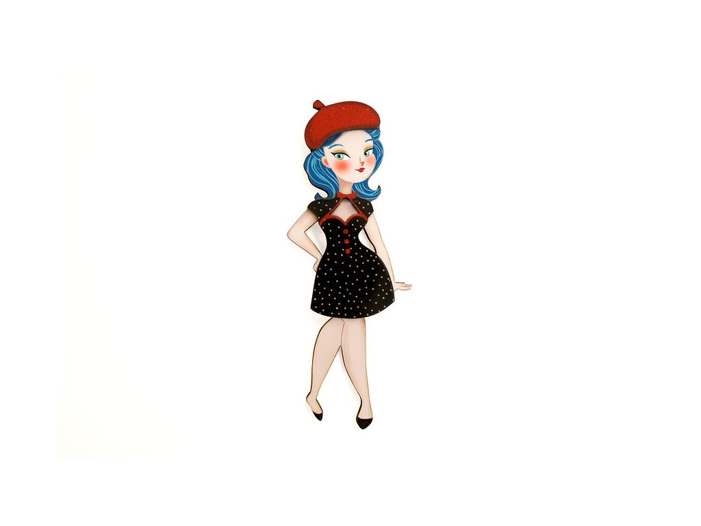 Brož slečna Lali + jeden outfit - černé šaty a červený baret