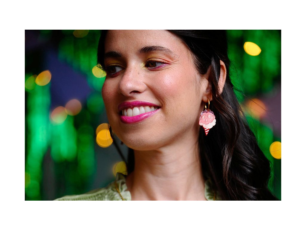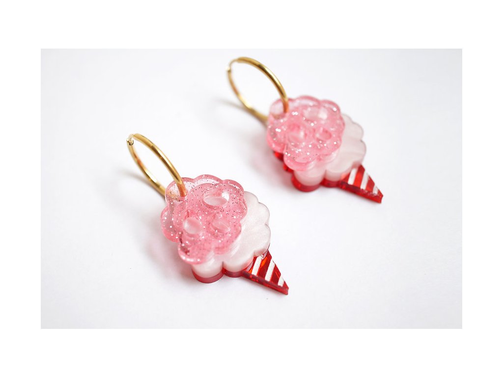 Tyto akrylové náušnice ve tvaru cukrové vaty s tváří ducha jsou ideální pro milovníky strašidelné roztomilosti a vtipných detailů. Jsou vyrobeny z různých akrylových pryskyřic, červené se zrcadlovým efektem, bledě růžové s perletí a růžové se třpytkami.