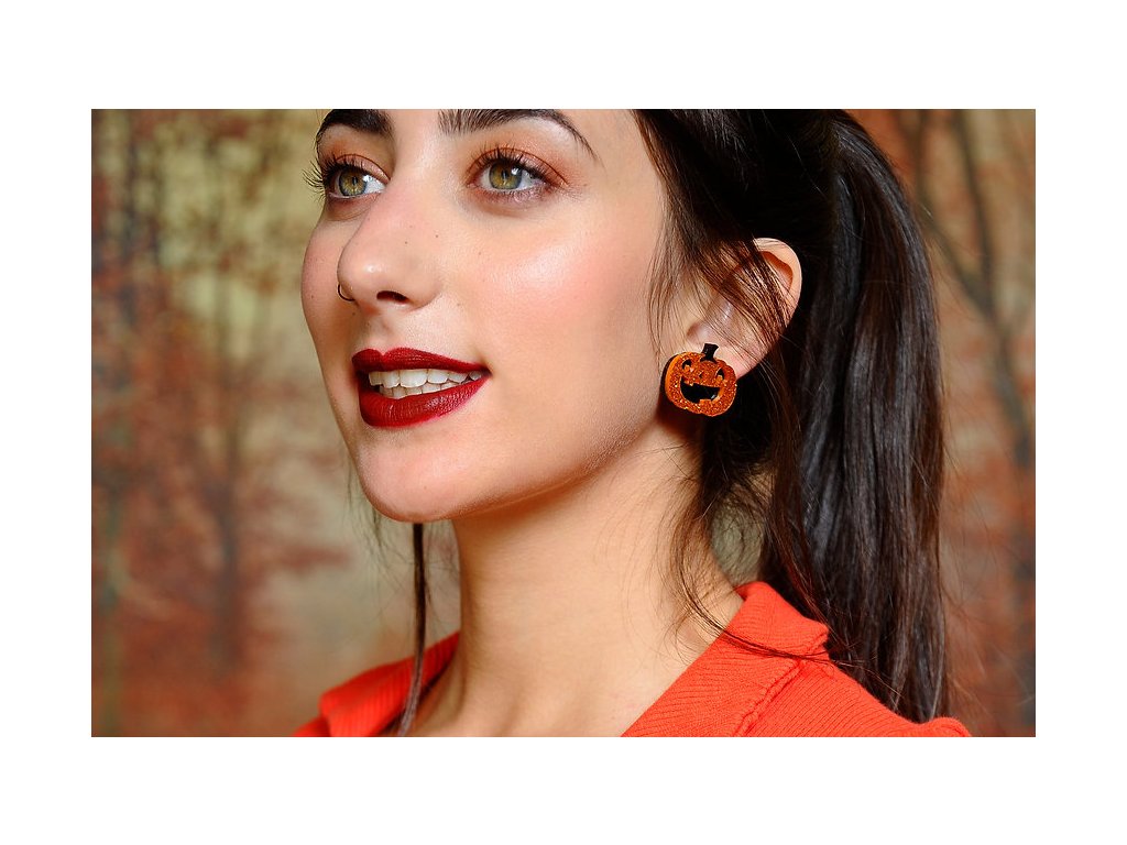 Náušnice vyrobené z třpytivého akrylu. Všechny kovové části, které přicházejí do styku s pokožkou, jsou postříbřené a neobsahují zinek.