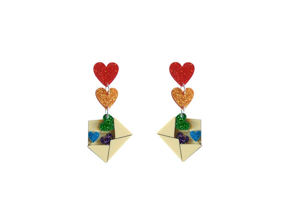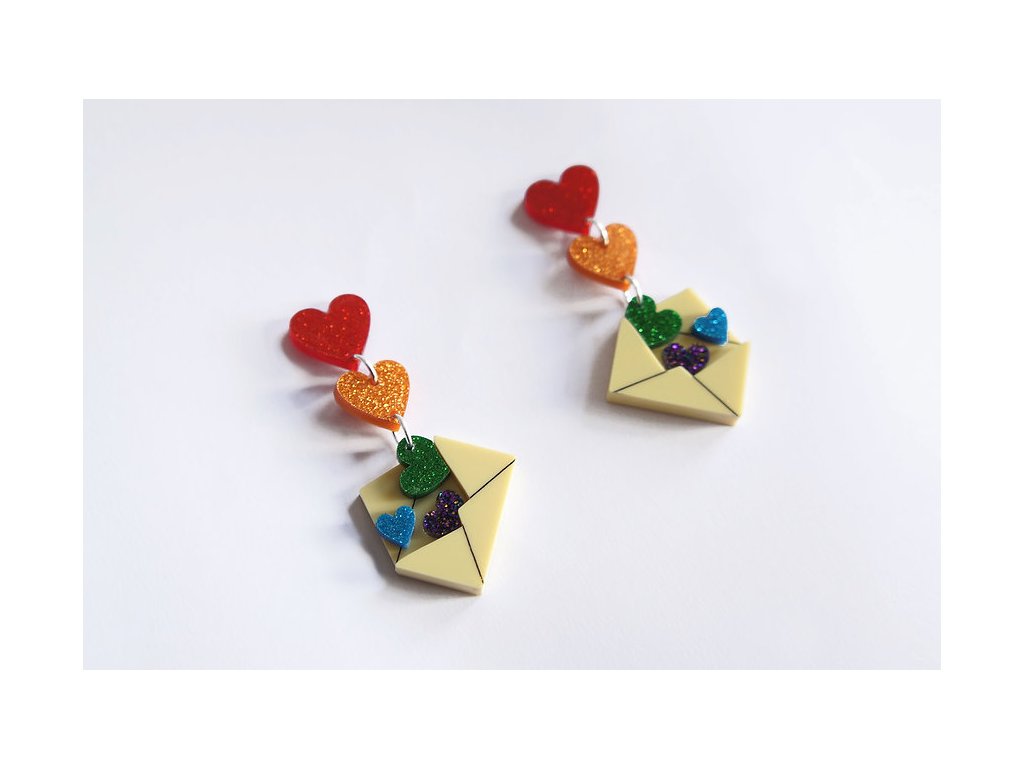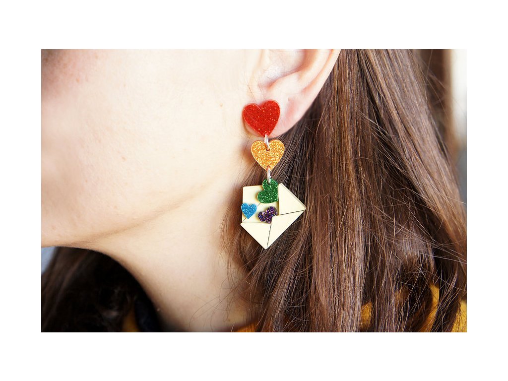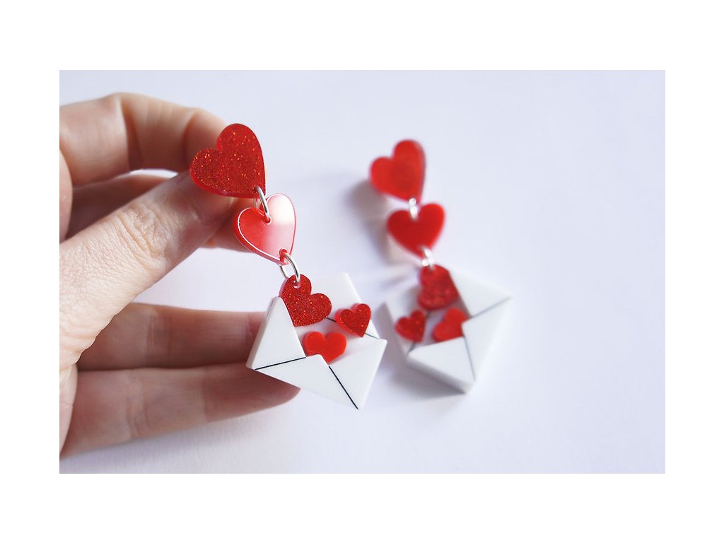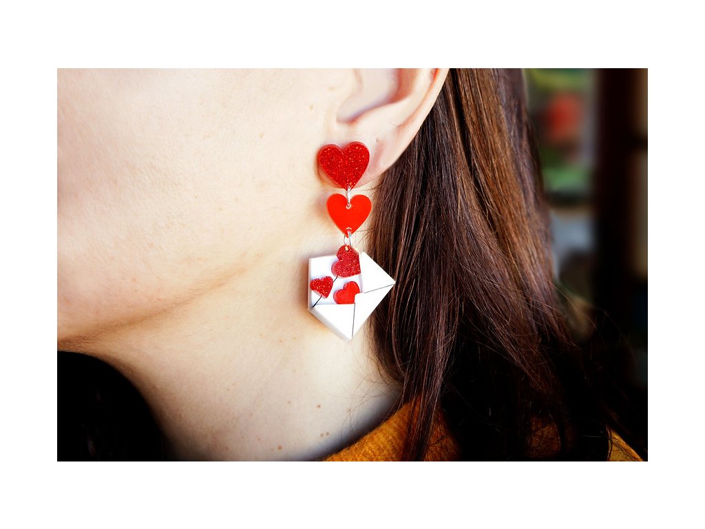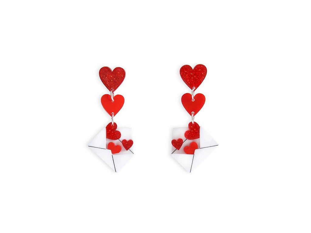 Visací náušnice Zamilovaný dopis, obálka se srdíčky