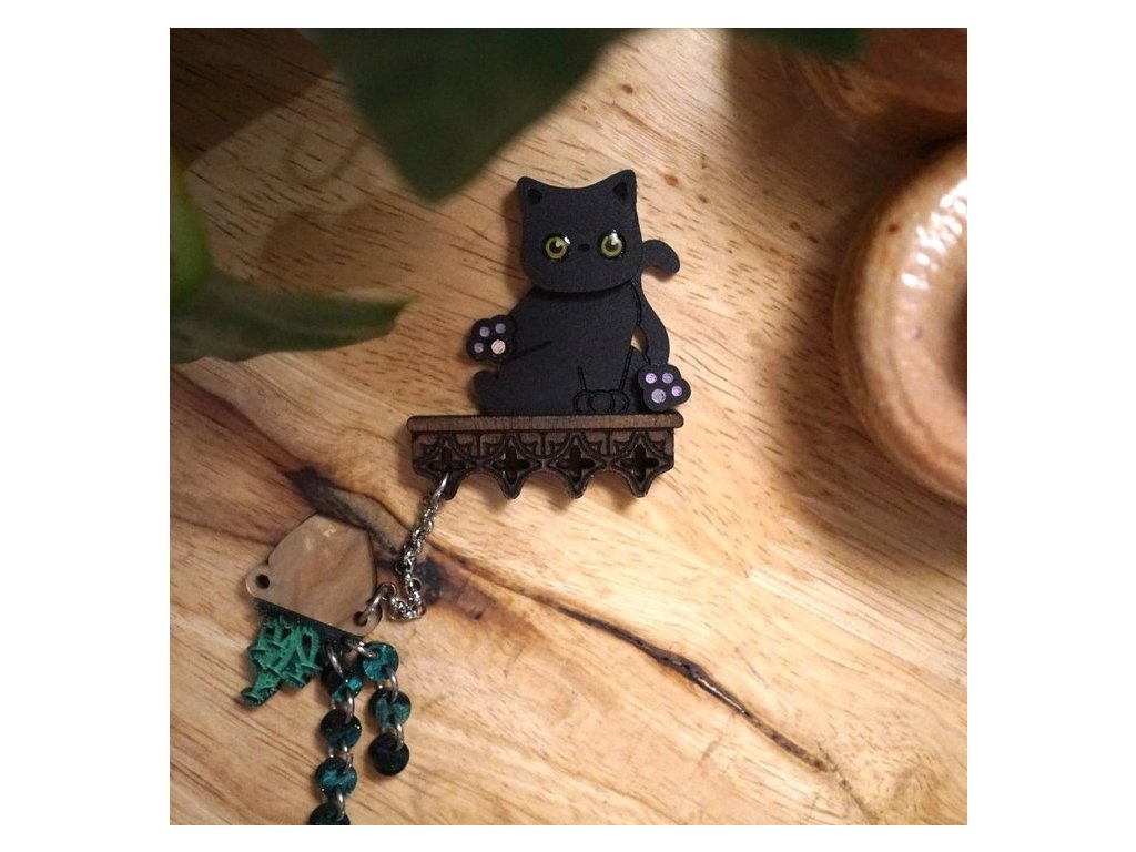 Lost Kiwi Design Brož Malý uličník - černá kočička