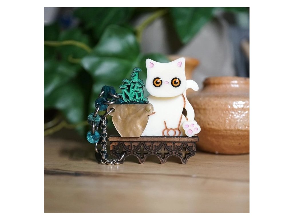 Tenhle neposlušný uličník zničil další rostlinu. Možná žárlí, protože si myslí, že své rostliny milujete stejně jako domácí mazlíčky. Brož je inspirována kočičím darebákem jménem Shitty Kitty, který patří autorce návrhu a majitelce značky Lost Kiwi Design.
