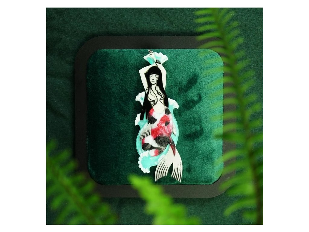 Brož Mořská panna s ploutví v barvě japonské okrasné rybky Koi