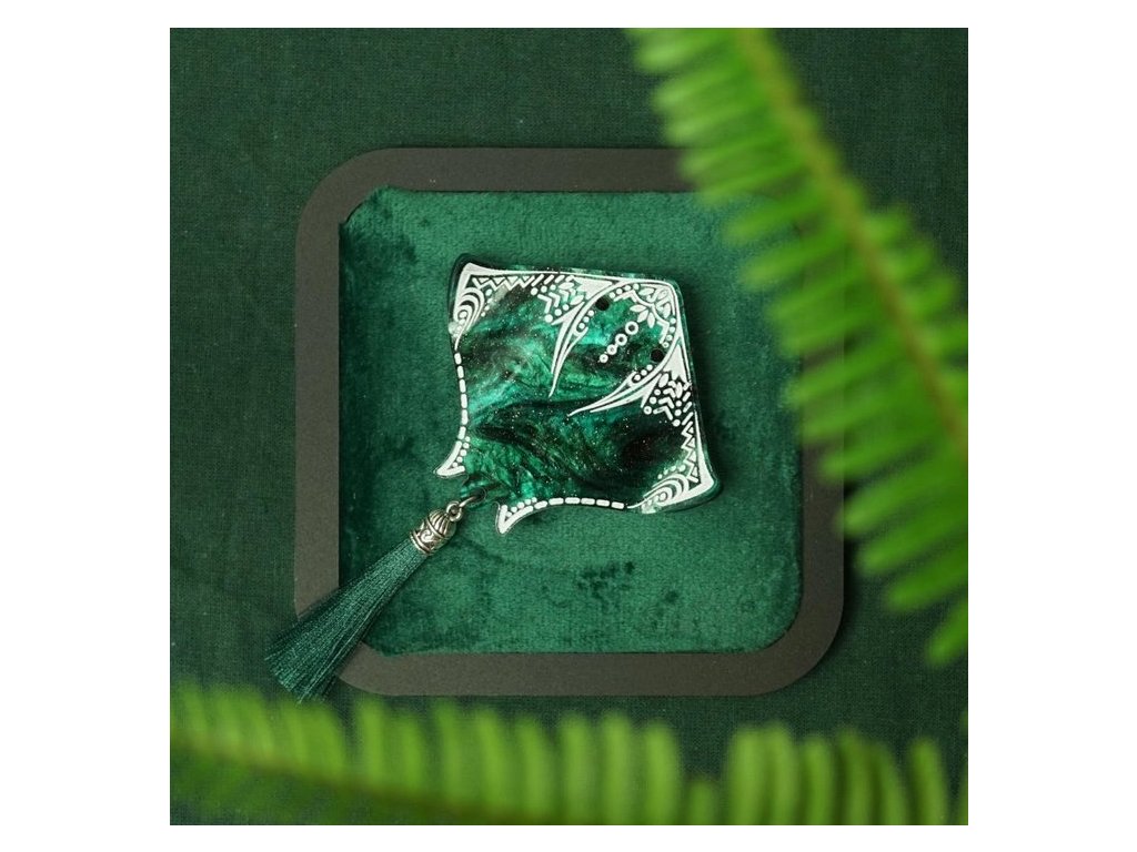 Tento náhrdelník je vyrobený technikou tepelného tvarování akrylu, která dovoluje zachytit rozmáchlé pohyby rejnoka ve vodě. Je zdoben pozoruhodnými detaily a laserem řezanými ornamenty. Je to lehký, odolný, nadčasový doplněk pro ty, kteří ocení umělecké zpracování i tichou sílu přírodního světa.