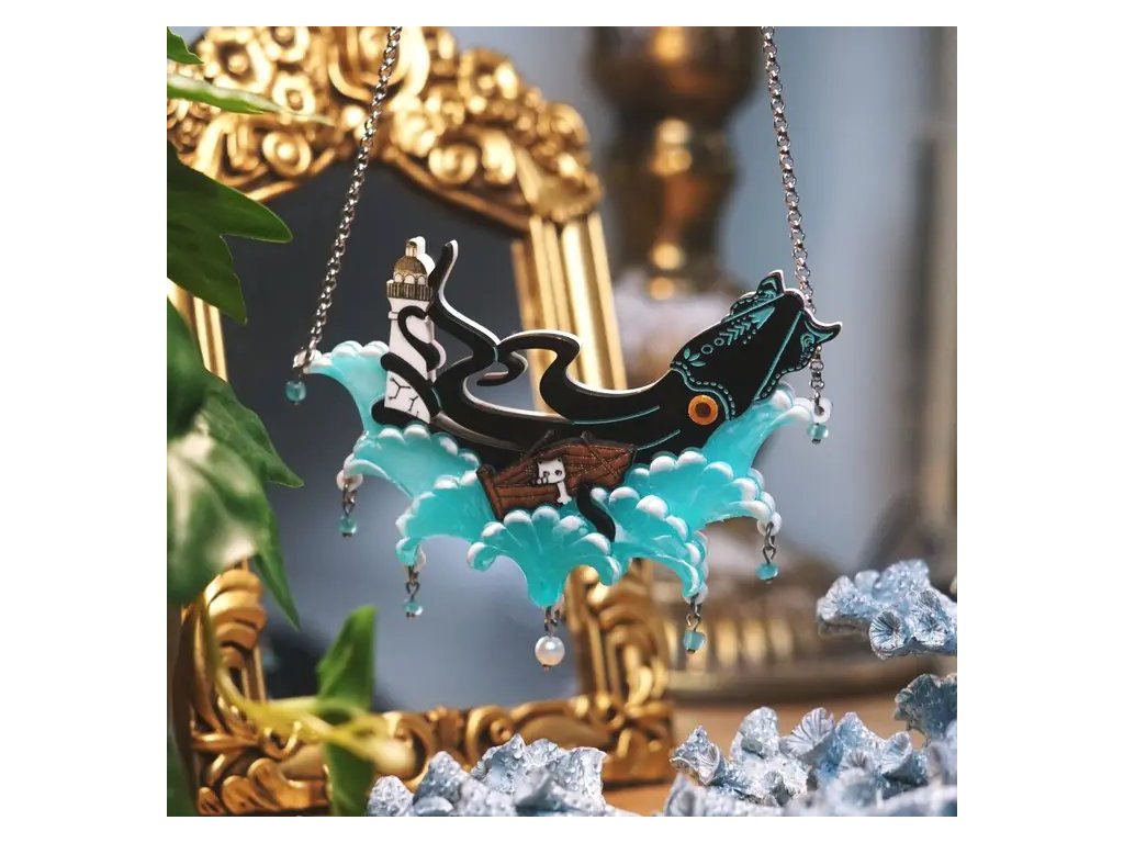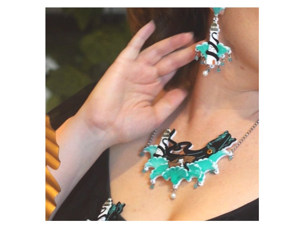 Náhrdelník o rozměrech 12 x 9 cm je vyrobena z akrylu a pryskyřice. Dokonalé 3D detaily, které jsou ručně vyřezávané. Každý kus je skutečně jedinečným originálem. Řetízek náhrdelníku je vyroben z chirurgické oceli a má tři možnosti zapnutí k úpravě délky. Tento design je vyroben ve velmi omezeném množství, aby každý z vyrobených kusů mohl dostat potřebný čas na svůj vznik a bude po doprodání vyřazen z nabídky.