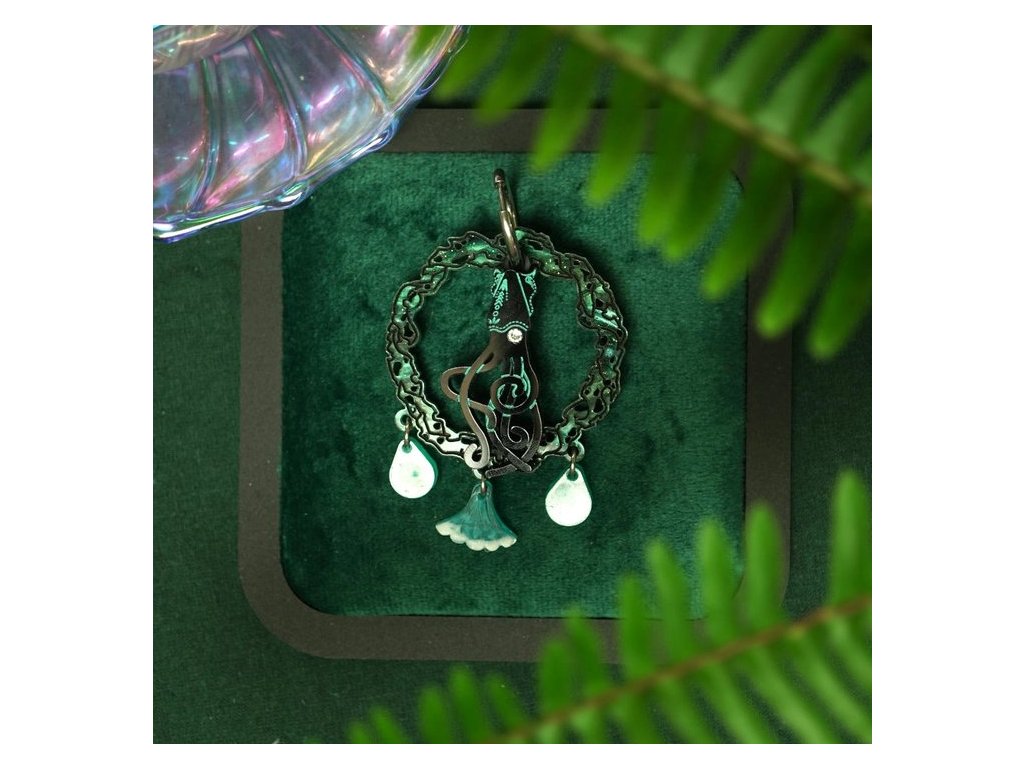 Náhrdelník lze nosit samostatně nebo k němu pomocí konvertoru, který je součástí balení, připevnit přívěsek olihně. Obě varianty působí velmi elegantně. Řetízek je vyroben z nerezové oceli a má délku 47-56 cm, Chaluhy spletené v kruh o průměru 6 cm a přívěsek oliheň má rozměry 4 x 2 cm.