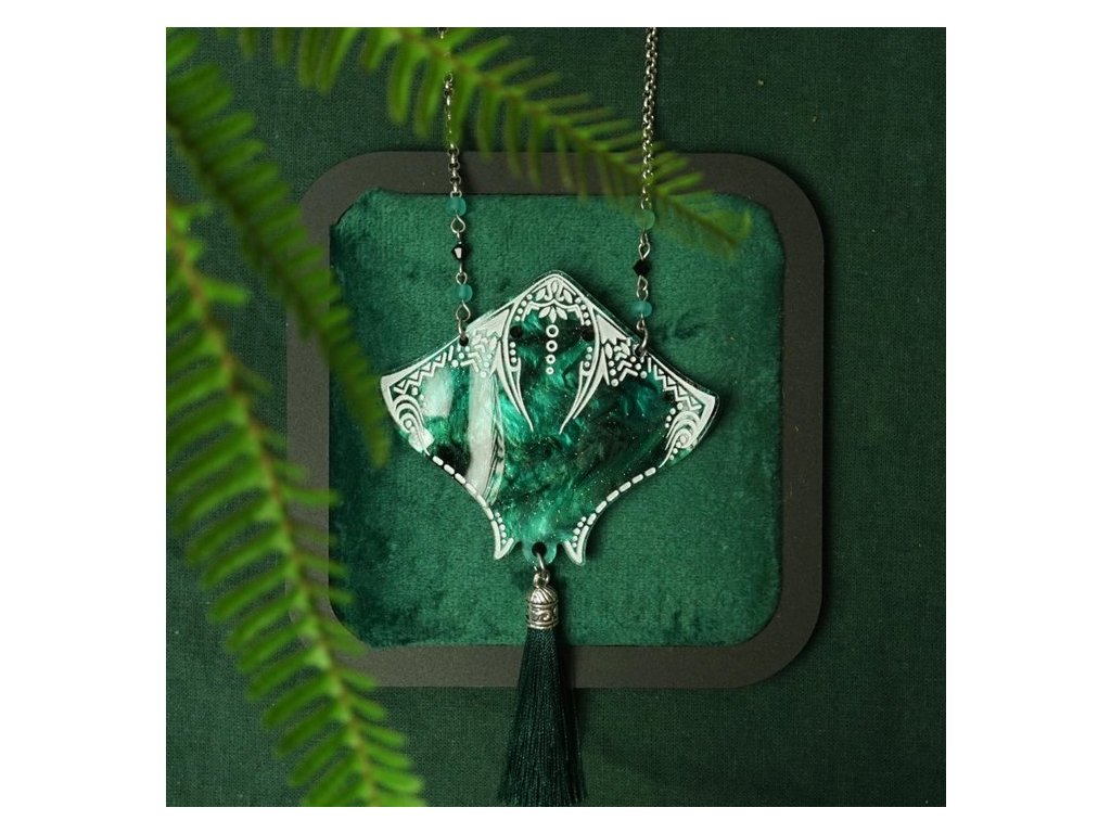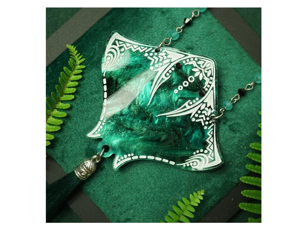Náhrdelník Rejnok plující oceánem v temně zelených odstínech