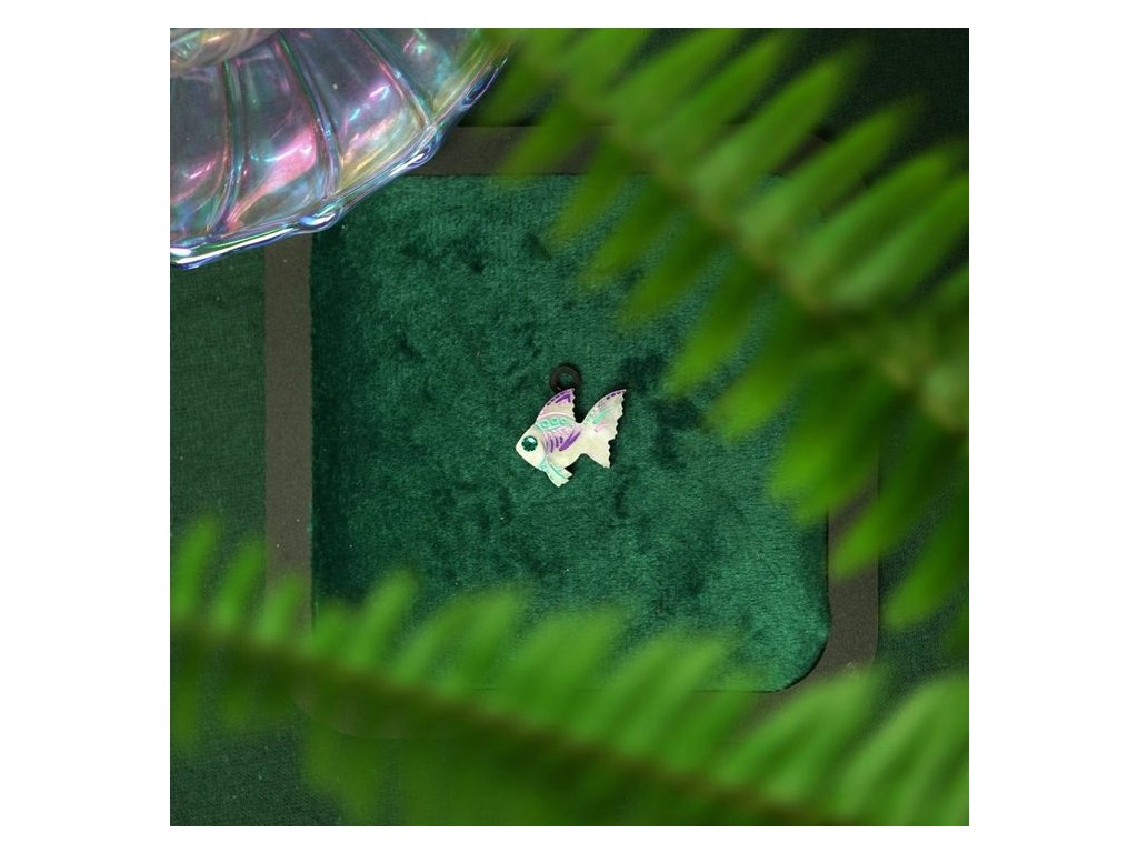 Přívěsek duhová rybička je ideální jako drobný dáreček, šperk pro malé parádnice. Přívěsek je vyroben z akrylové pryskyřice s třpytivým, modrým kamínkem, který tvoří oko ryby, rozměry jsou 3 x 2 cm.
