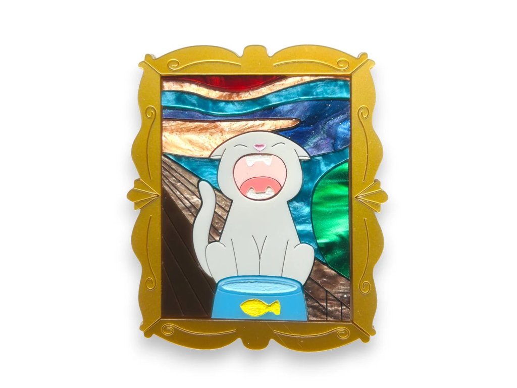 Brož je vyrobena ze dvou vrstev akrylové pryskyřice s rámem ze zlaté pryskyřice s metalickým leskem. Rozměry brože jsou 7,5 cm výška x 6 cm šířka. Zapínání s bezpečnostní pojistkou vyrobené z nerezové oceli.