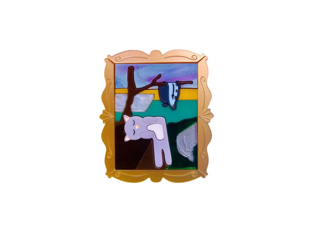 Známé surrealistické téma roztékajícího se času v němž čas není pevným, objektivním pojmem ztvárněné v podobě obrazu kočky ... nu, však kočka také není právě objektivním tvorem ...😄