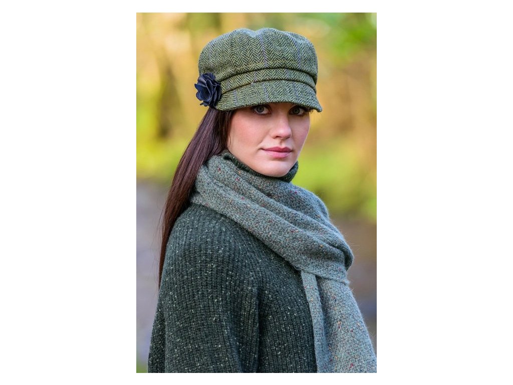 Mucros Weawers Dámská vlněná Newsboy Cap se vzorem rybí kosti Herringbone - zelená