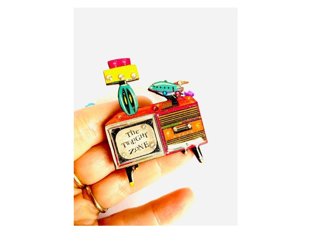 Nádherná brož televize v retro stylu s nádechem Atomic Abode.