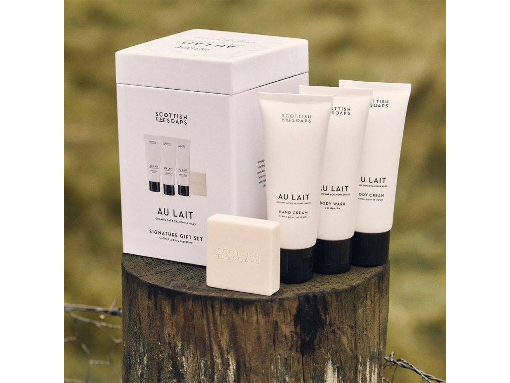 Dokonalá sada pro chvíle, kdy si chcete dopřát jemnou péči s vůní mléka, kokosu, květin a santalového dřeva. Au Lait sada ukrývá čtyři produkty v praktickém balení, které pečují o pokožku od hlavy až k patě. Čisticí sprchový gel, vyživující tělový krém, krém na ruce s bambuckým máslem a jemné tuhé mýdlo s ovesným mlékem a extraktem z heřmánku vytvářejí harmonický celek pro každodenní pečující rituál. Sada produktů Au Lait je ideální jako dárek nebo malý luxus pro vaši pokožku.