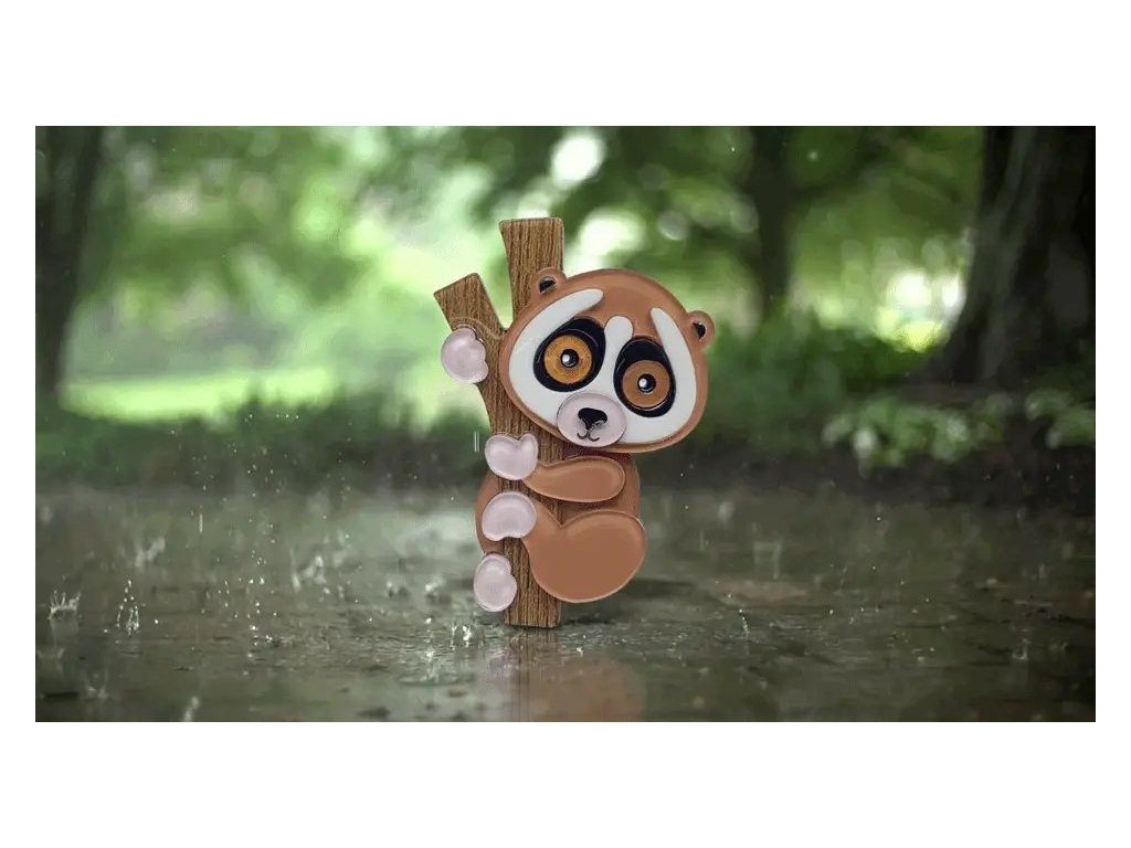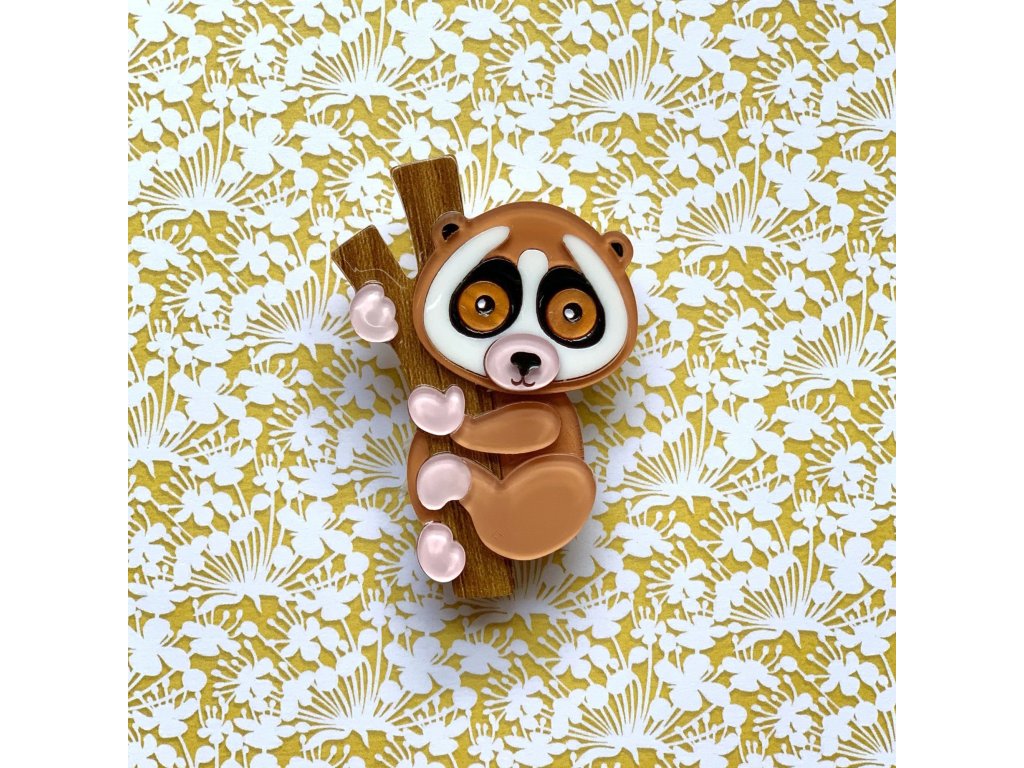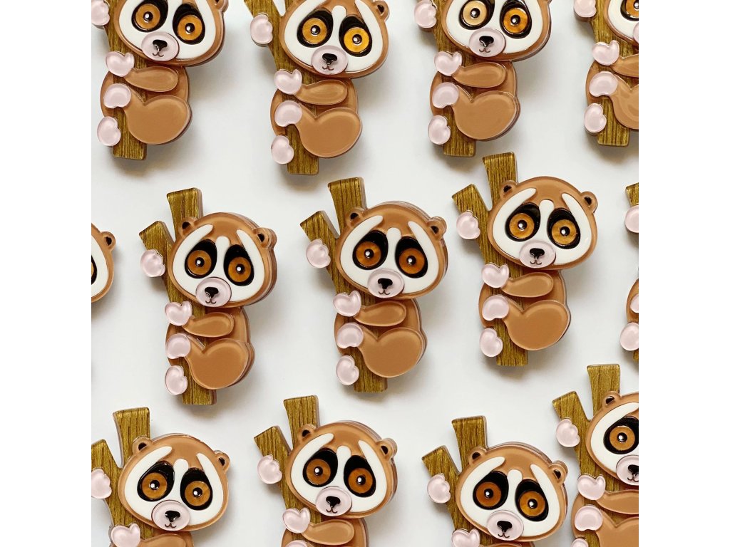 Brož vytvořená pro připomínku jednoho půvabného, bohužel ohroženého druhu a tím je Outloň váhavý - Sunda the Slow Loris je noční zvíře, přesněji poloopice, původem ze Singapuru, Malajsie, Indonésie a jižního Thajska. Tento druh je zařazen na seznam ohrožených druhů kvůli nekontrolovatelnému obchodu s exotickými zvířaty a odlesňování.