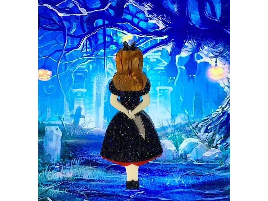 Tantalising Treasures Brož Alenka ve třpytivých černých šatech s nožem