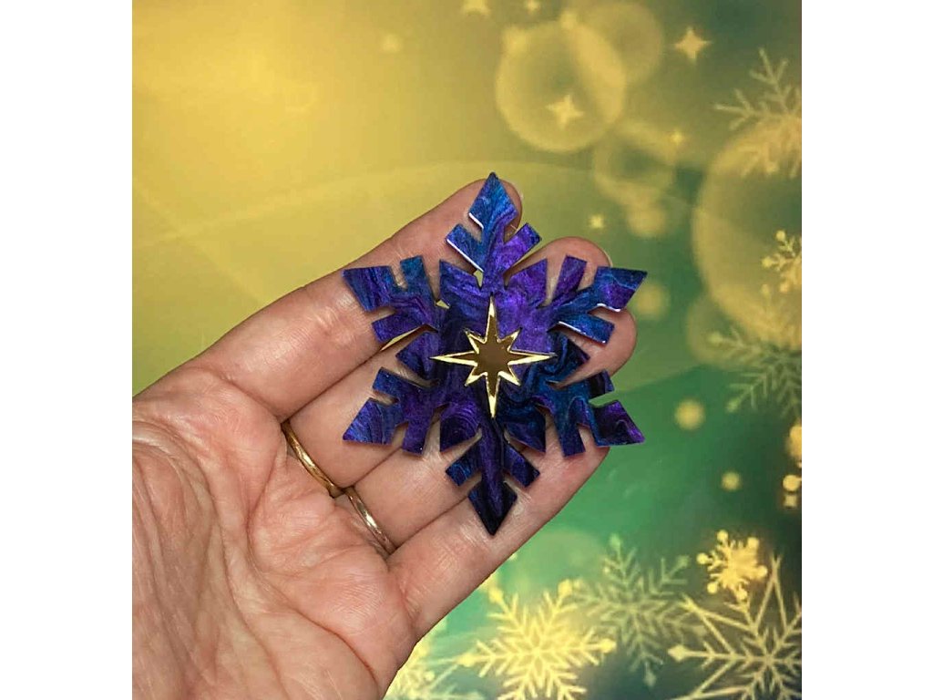 Tantalising Treasures Brož Sněhová vločka v modro/fialovo/zlaté verzi