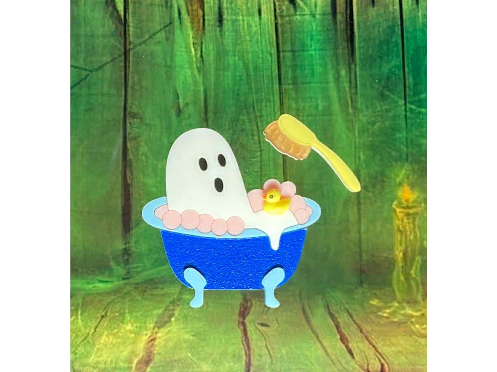 Bububu-blinková koupel je pro Ducha v čase velké, Halloweenské noci nutná a umí si ji skvěle užít. Pěna do koupele, pořádný kartáč na záda a gumová kachnička nesmí chybět.