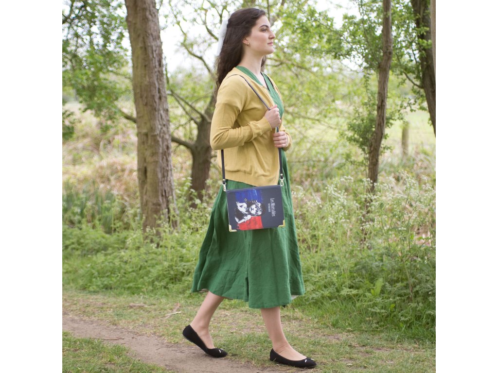 Je-li pro Vás silný příběh bývalého trestance Jeana Valjeana tím srdečním a jeho odkaz vnímáte jako stále živoucí, dejte to znát s hrdostí. Tato kabelka z vegan kůže je navržena tak, aby vypadala jako skutečná knižní verze románu Victora Huga Les Misérables. Je na ní vyobrazena Cosette nad francouzskou vlajkou a na tmavě modrém pozadí. Na zadní straně kabelky je výrazný nápis hesla Francouzské revoluce „Liberté, Égalité, Fraternité“ (Svoboda-Rovnost-Bratrství)