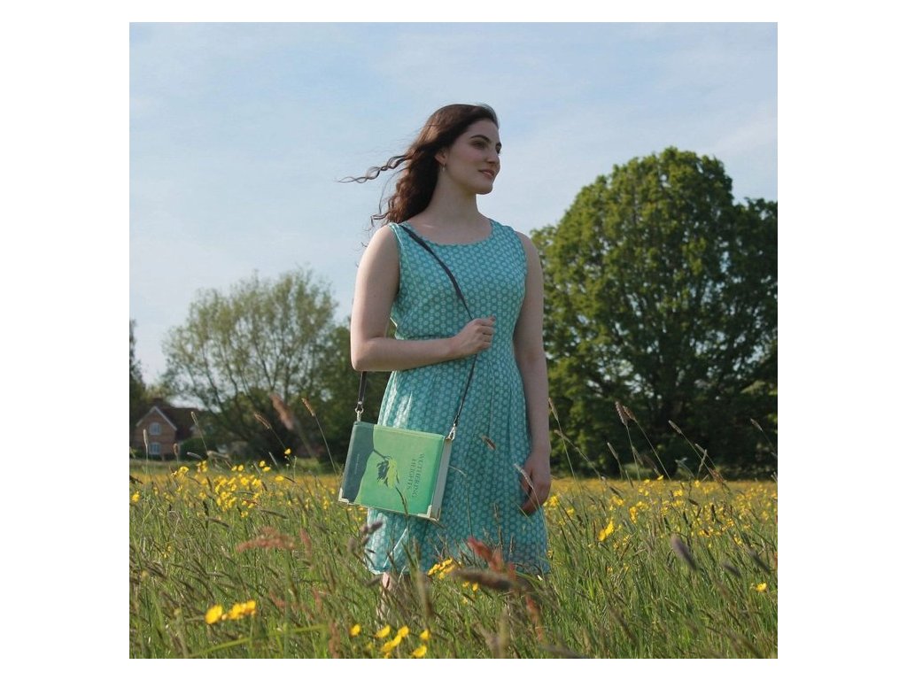Kabelka s motivem obálky Emiliy Brontë, Na větrné hůrce, malá v odstínech zelené a tyrkysové