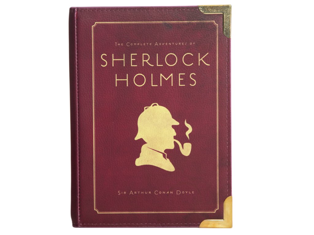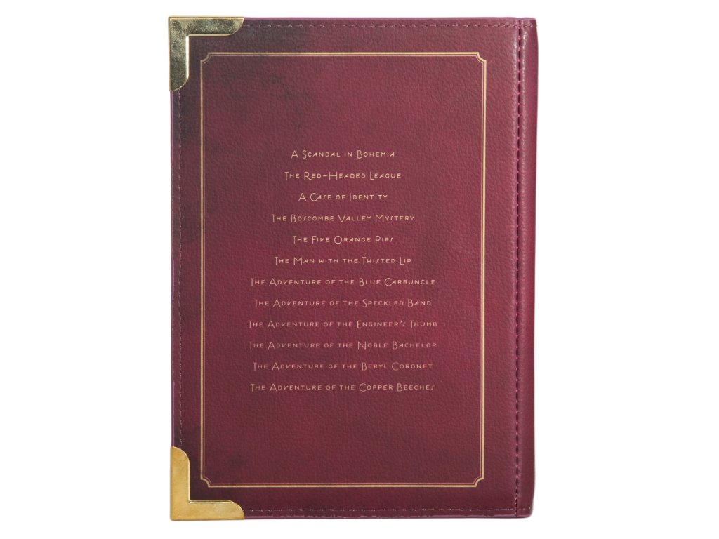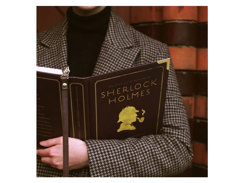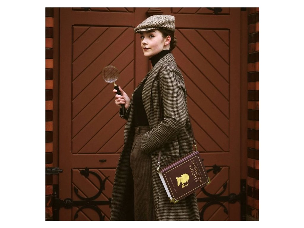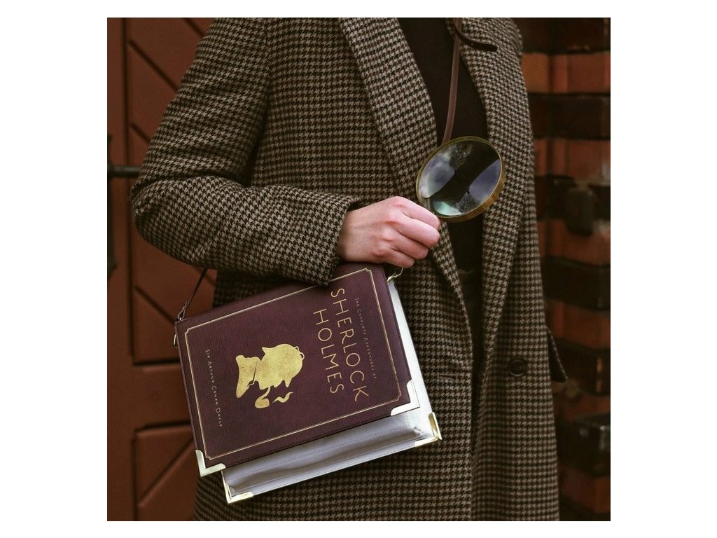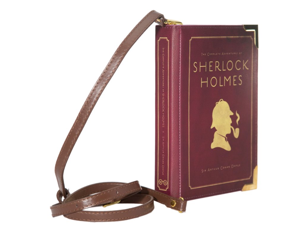 Povídky sira Arthura Conana Doyla o slavném detektivovi Sherlocku Holmesovi dobily svět. Pokud i Vy patříte k řadě čtenářů, které dodnes Sherlock Holmes a Dr. Watson baví, je tato kabelka z vegan kůže právě pro Vás. Pozadí siluety je v syté vínové barvě, která je záměrně skvrnitá, aby působila více opotřebovaně. Zadní strana kabelky je také názvy dvanácti povídek Sherlocka Holmese.